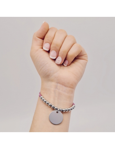 La placa de la pulsera mide 20mm y las bolas 5mm y 6mm.
