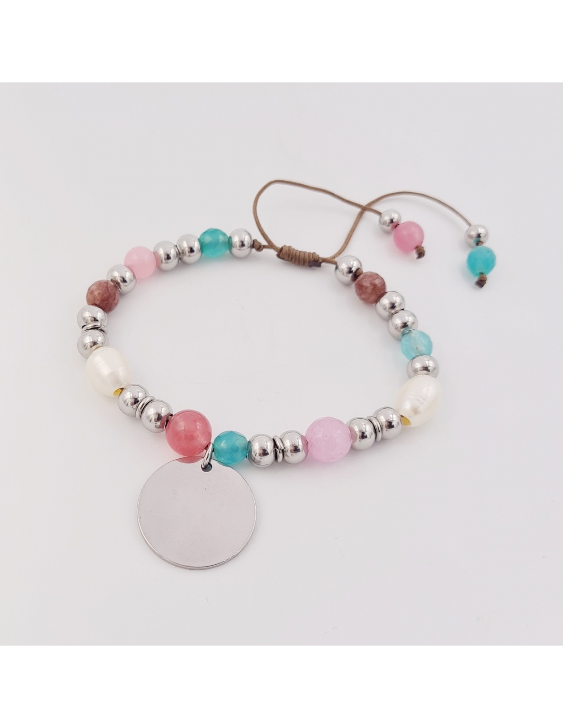Montada con ágatas y perlas barrocas, modelo Aurea-2, bolas de metal en acero inoxidable, ajustable.