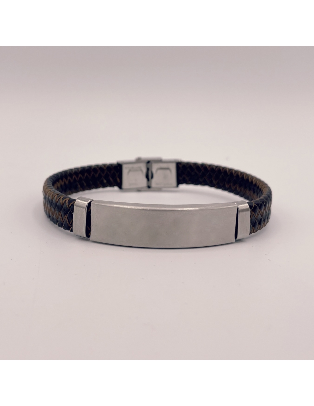 Pulsera modelo MOISES de cuero trenzado y de acero inoxidable. Ajustable.