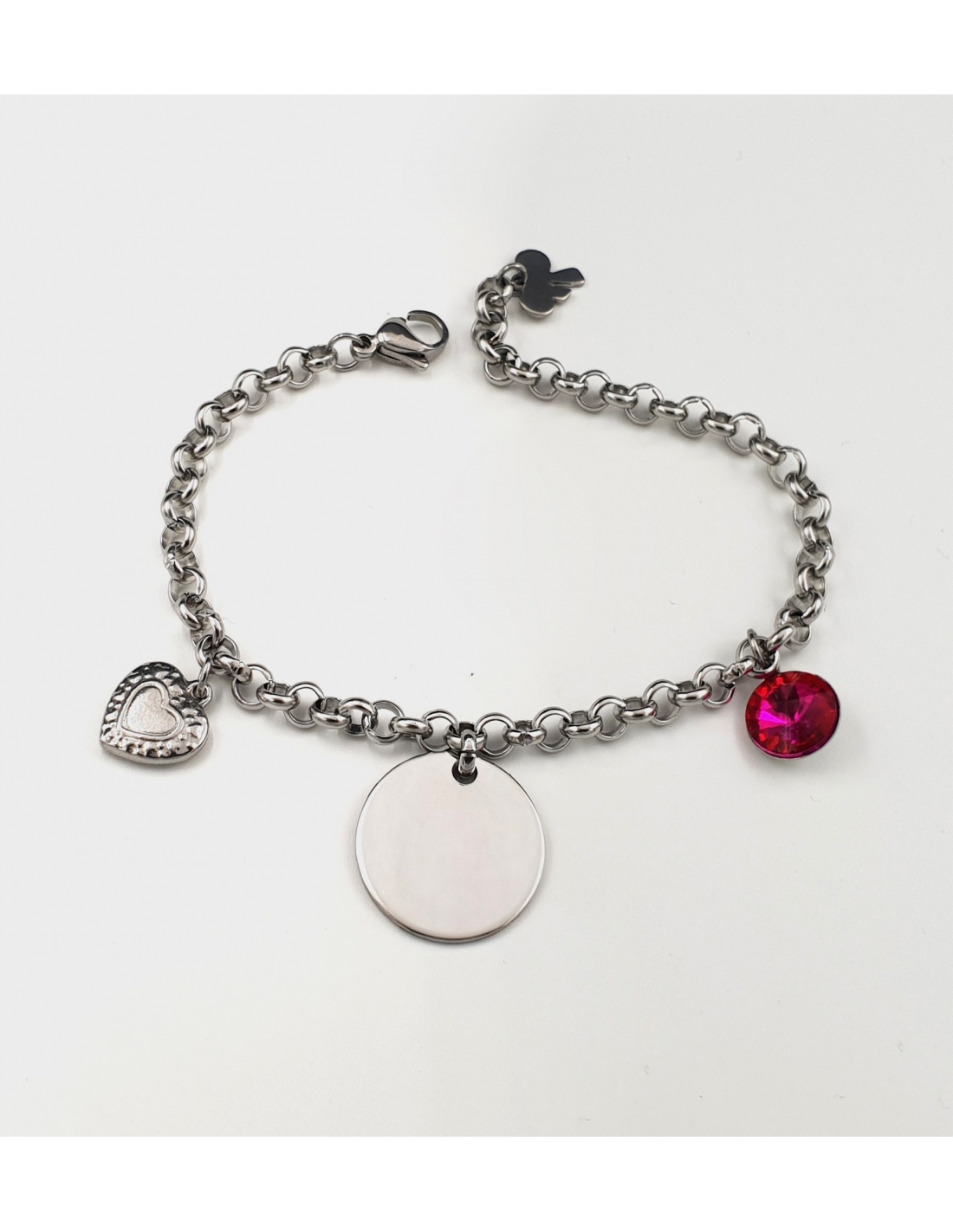 Pulsera modelo ANDANA, cadena redonda con adornos colgantes de acero inoxidable, ajustable.