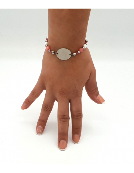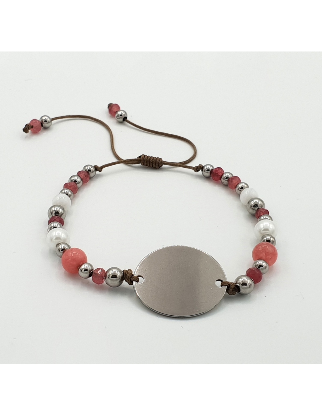 Pulsera modelo ALHAMBRA, mineral y acero inoxidable, con toques de nácar y perlas de vidrio, ajustable.
