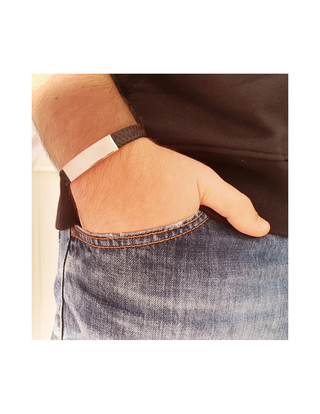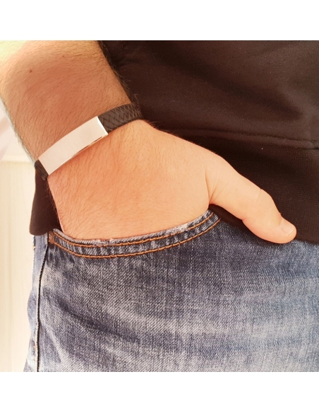 Recomendamos no mojar la pulsera, evitando el deterioro anticipado del cuero y conservando el brillo del acero.