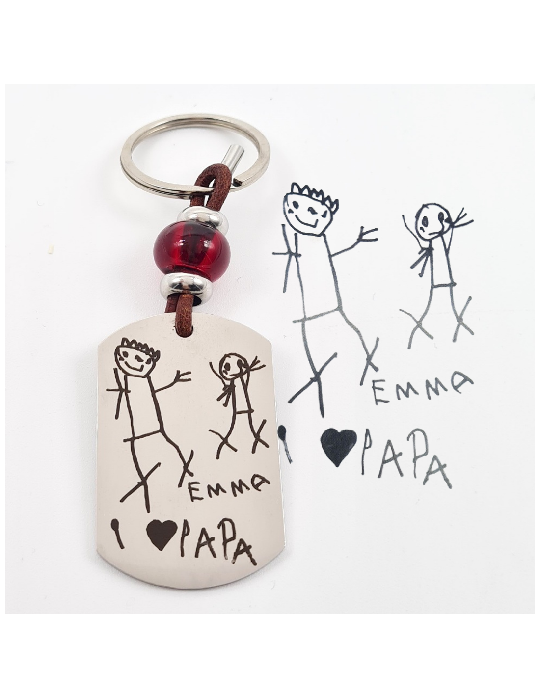 Llavero AMAPOLA, con dibujo de niño, personalizado, acero inoxidable.