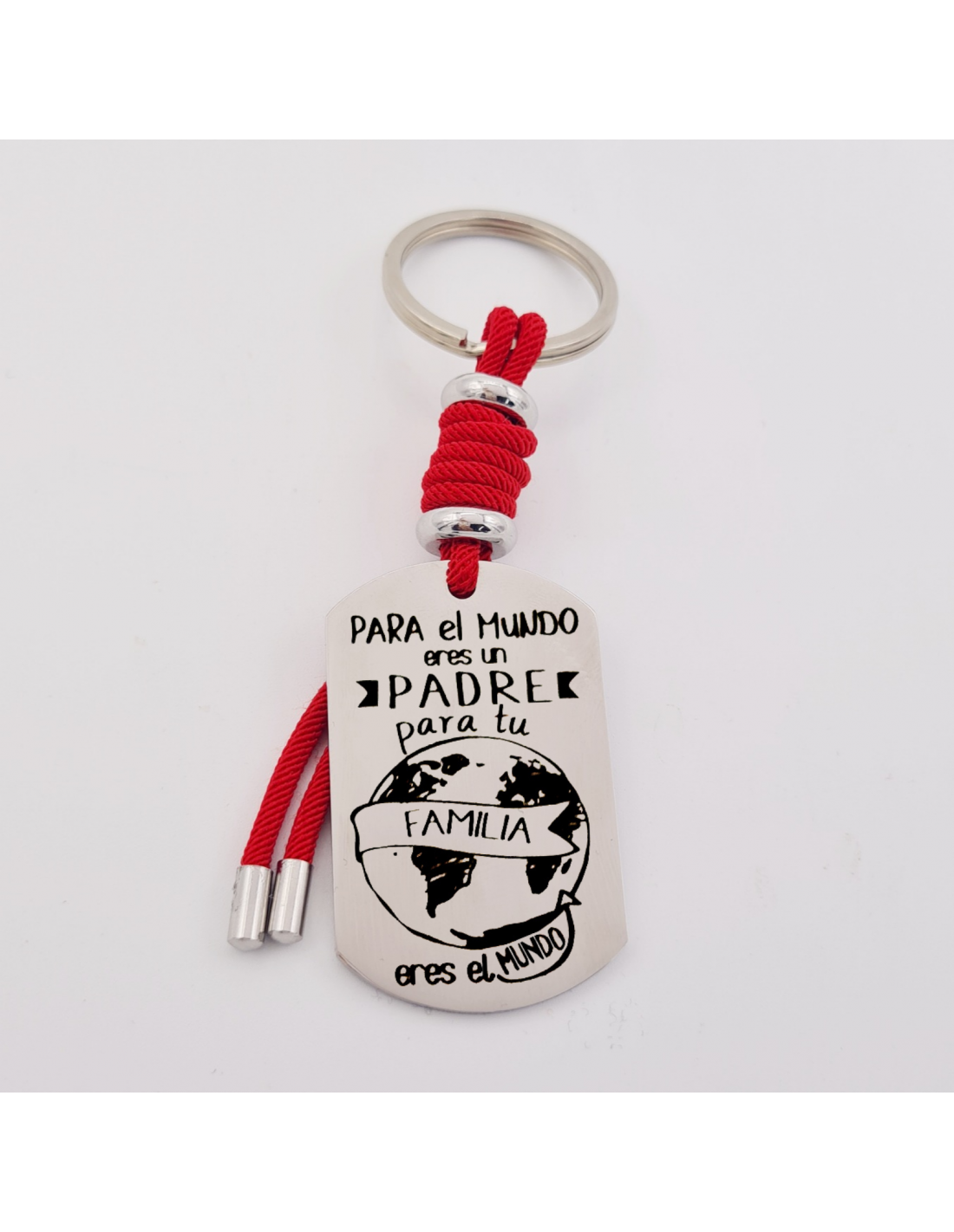 Llavero VENTURA, (Para el mundo eres un padre, para tu familia el mundo), cordón de milano, acero inoxidable.