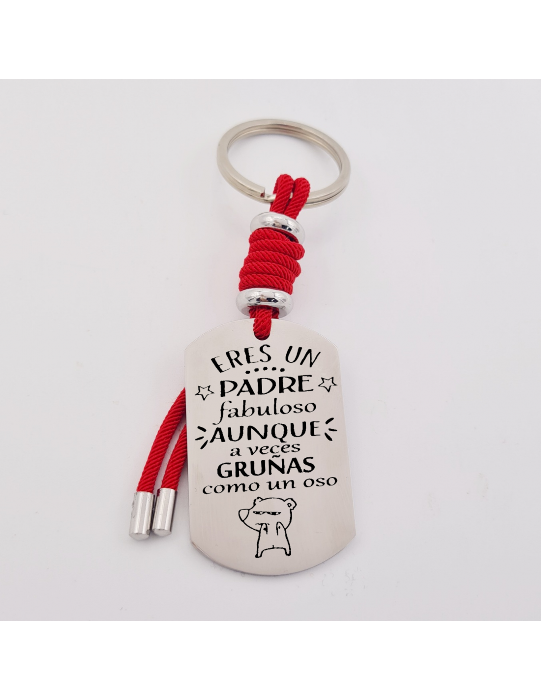 Llavero VENTURA, (Eres un padre fabuloso, aunque gruñas como un oso), cordón de milano, acero inoxidable.