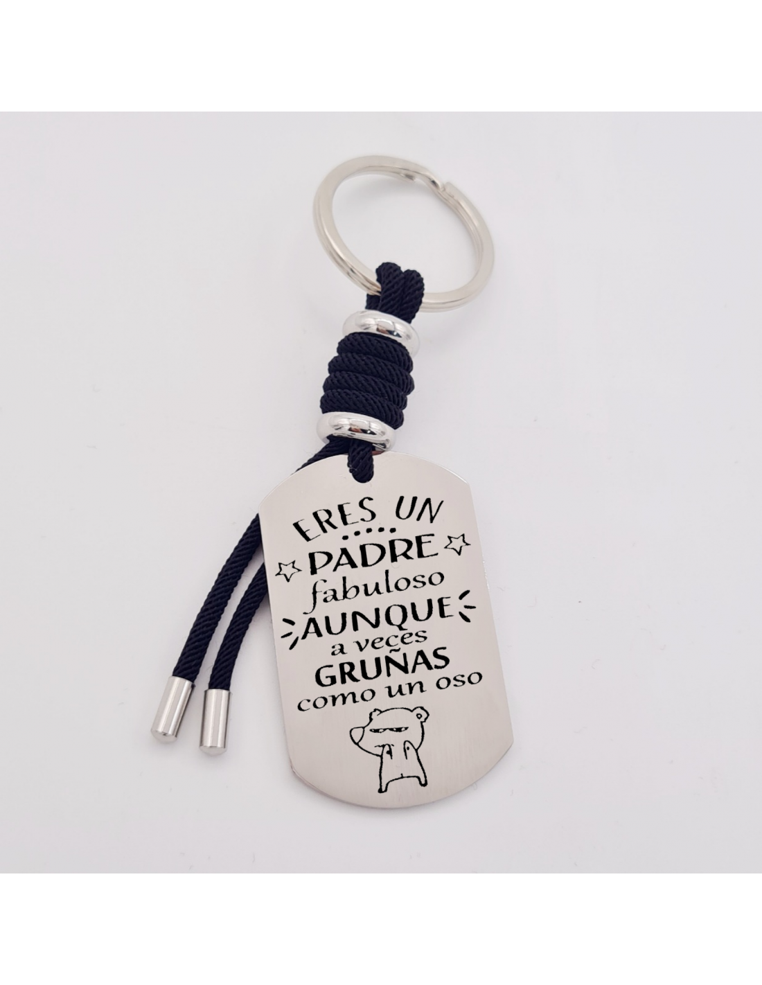 Llavero VENTURA, (Eres un padre fabuloso, aunque gruñas como un oso), cordón de milano, acero inoxidable.