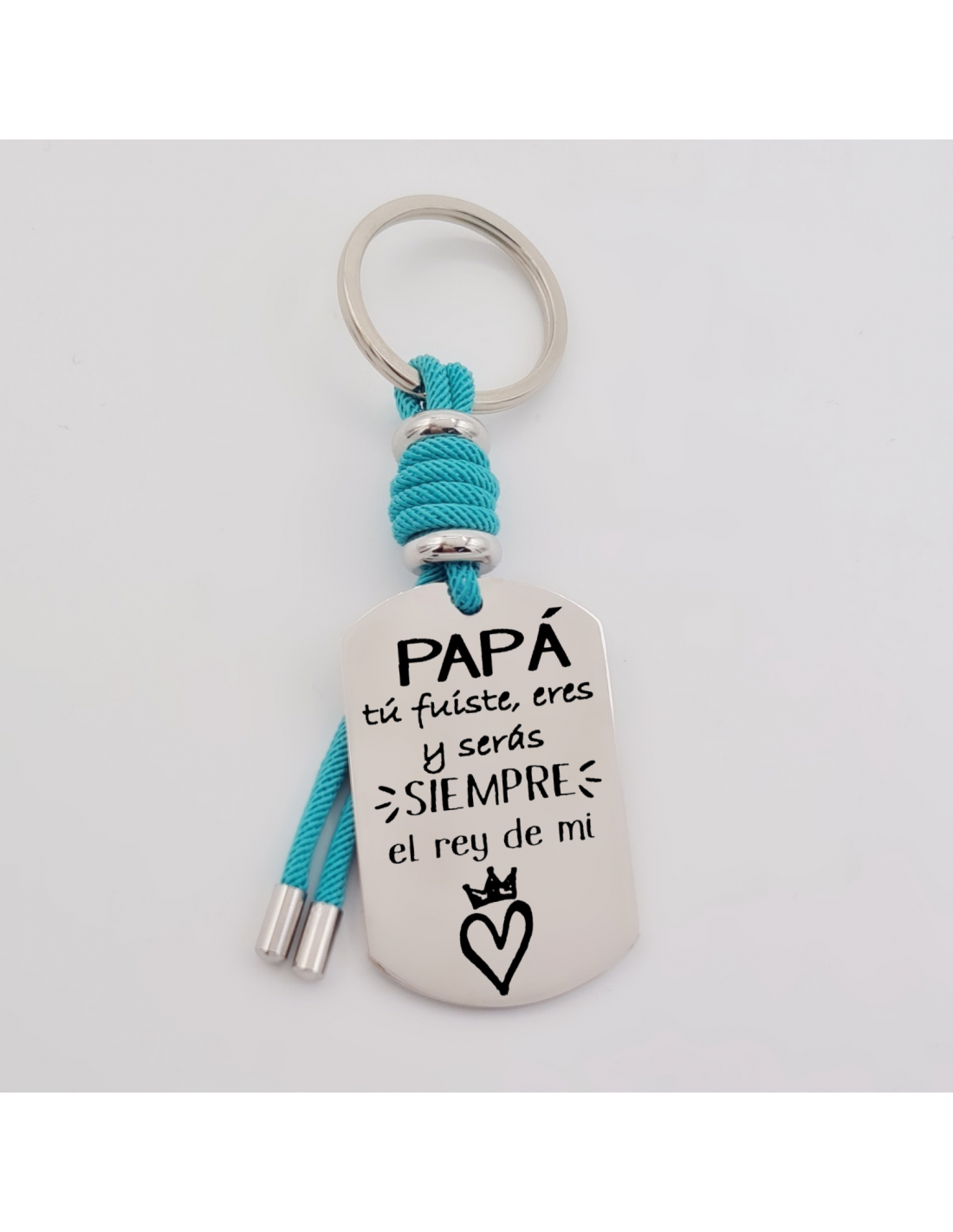 Llavero VENTURA, (Papá, tu fuiste, eres y serás el rey de mi corazón), cordón de milano, acero inoxidable.