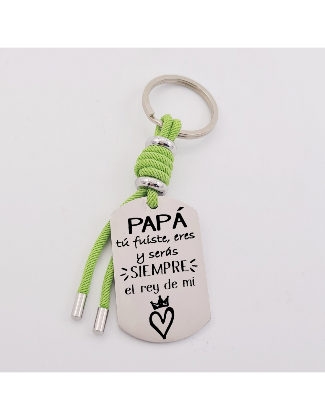 Llavero VENTURA, (Papá, tu fuiste, eres y serás el rey de mi corazón), cordón de milano, acero inoxidable.