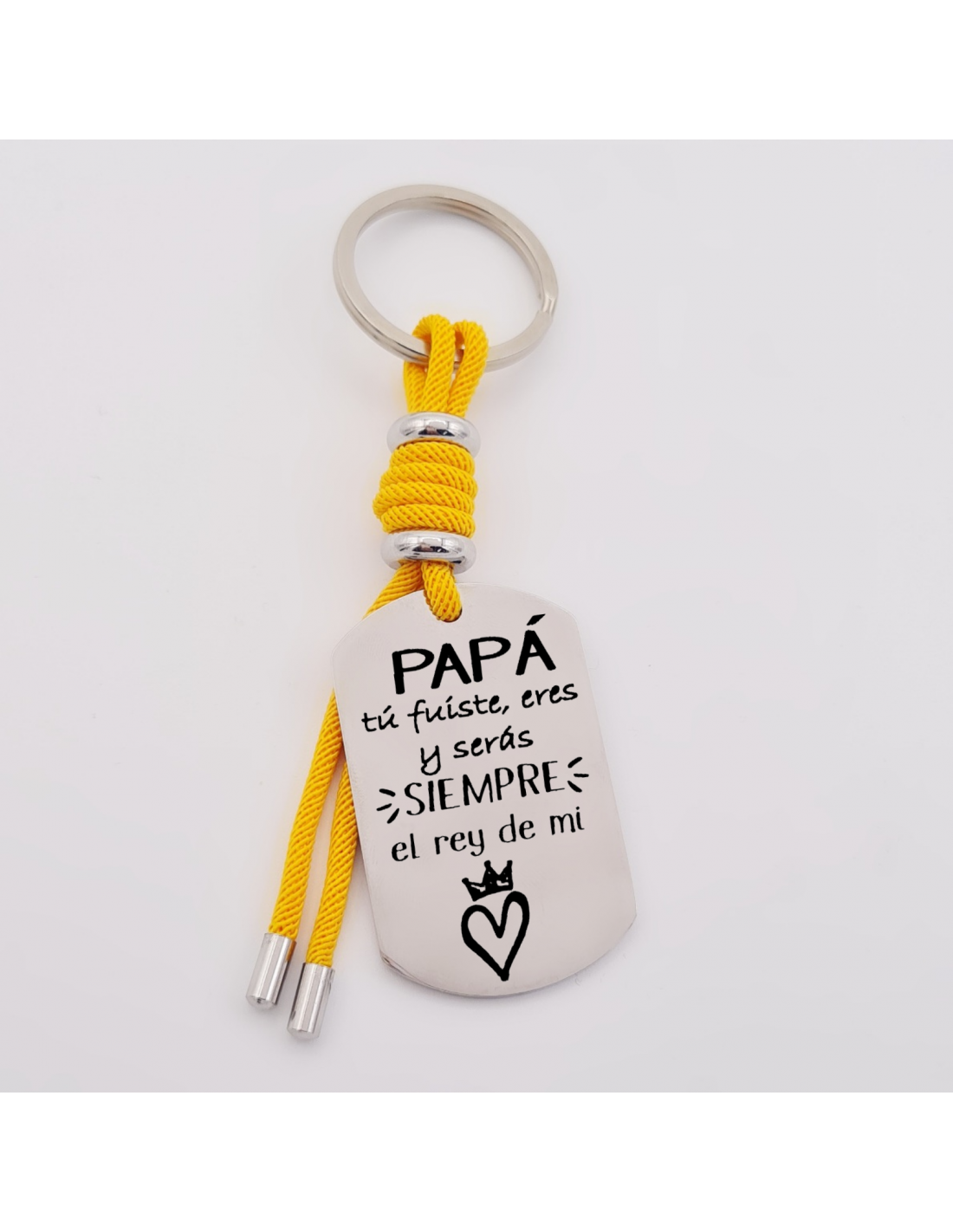 Llavero VENTURA, (Papá, tu fuiste, eres y serás el rey de mi corazón), cordón de milano, acero inoxidable.