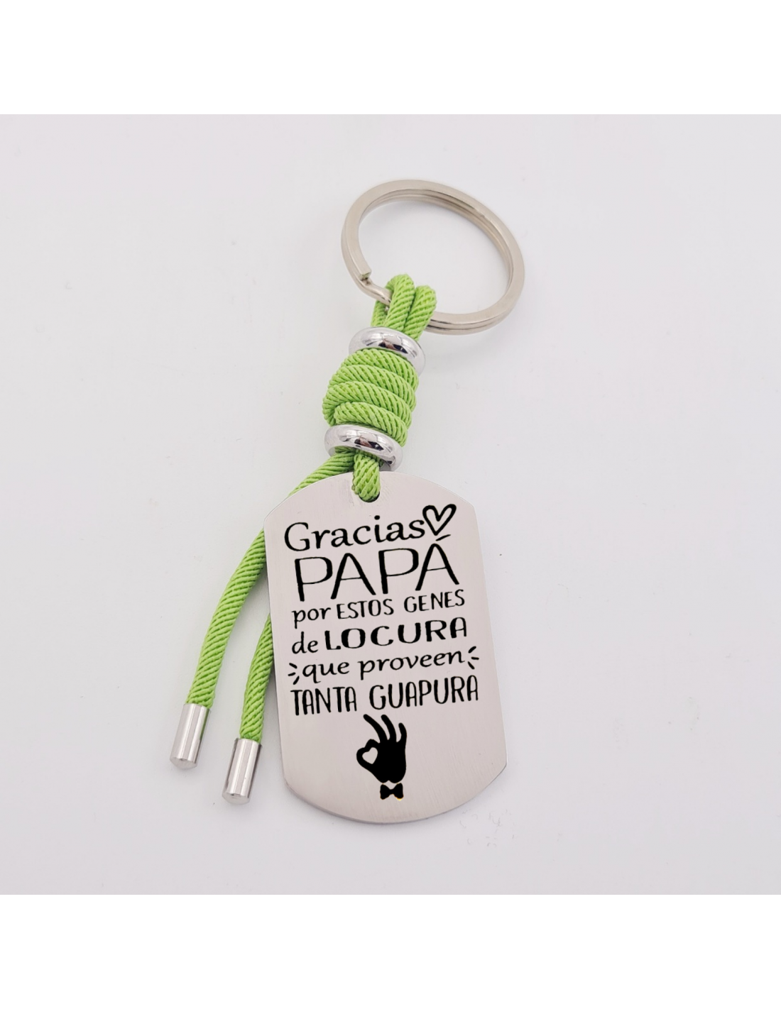 Llavero VENTURA, (Gracias Papá, por estos genes de locura), cordón de milano, acero inoxidable.