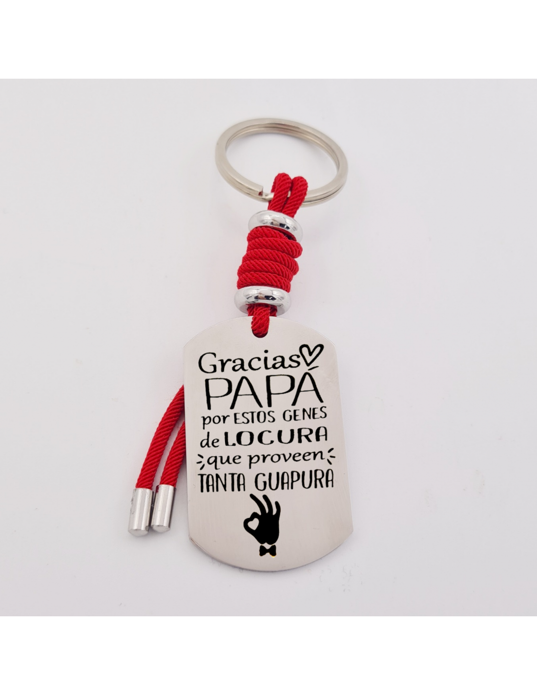 Llavero VENTURA, (Gracias Papá, por estos genes de locura), cordón de milano, acero inoxidable.