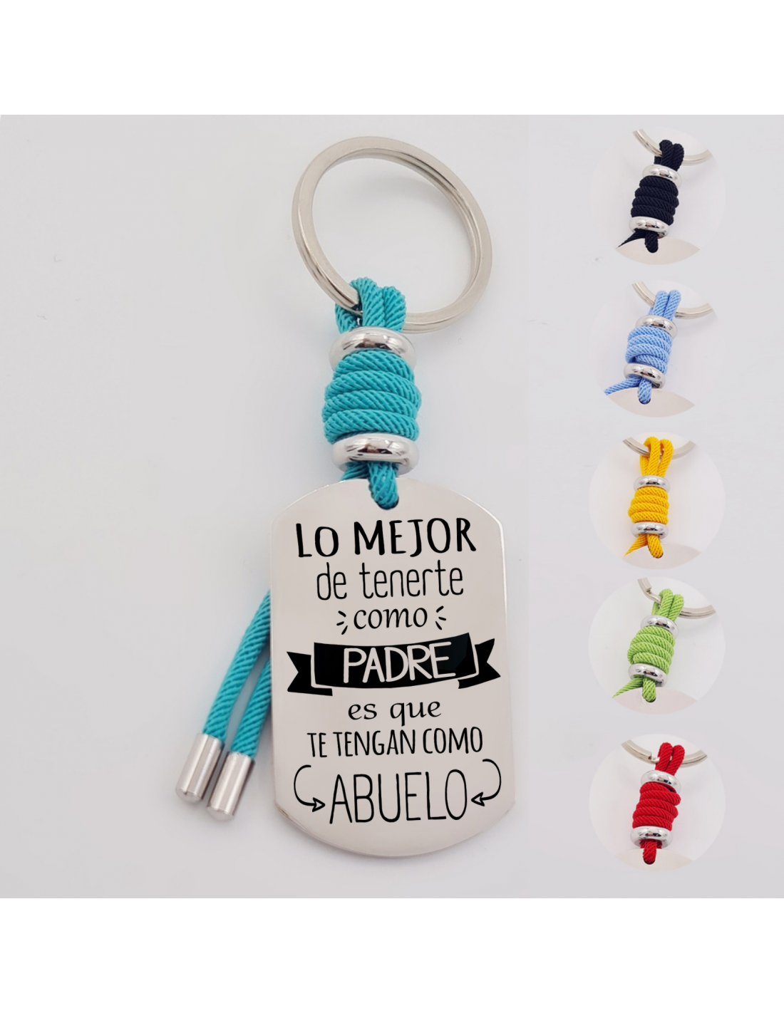 Llavero VENTURA, (Lo mejor de tenerte como padre, es que te tengan como abuelo), cordón de milano, acero inoxidable.