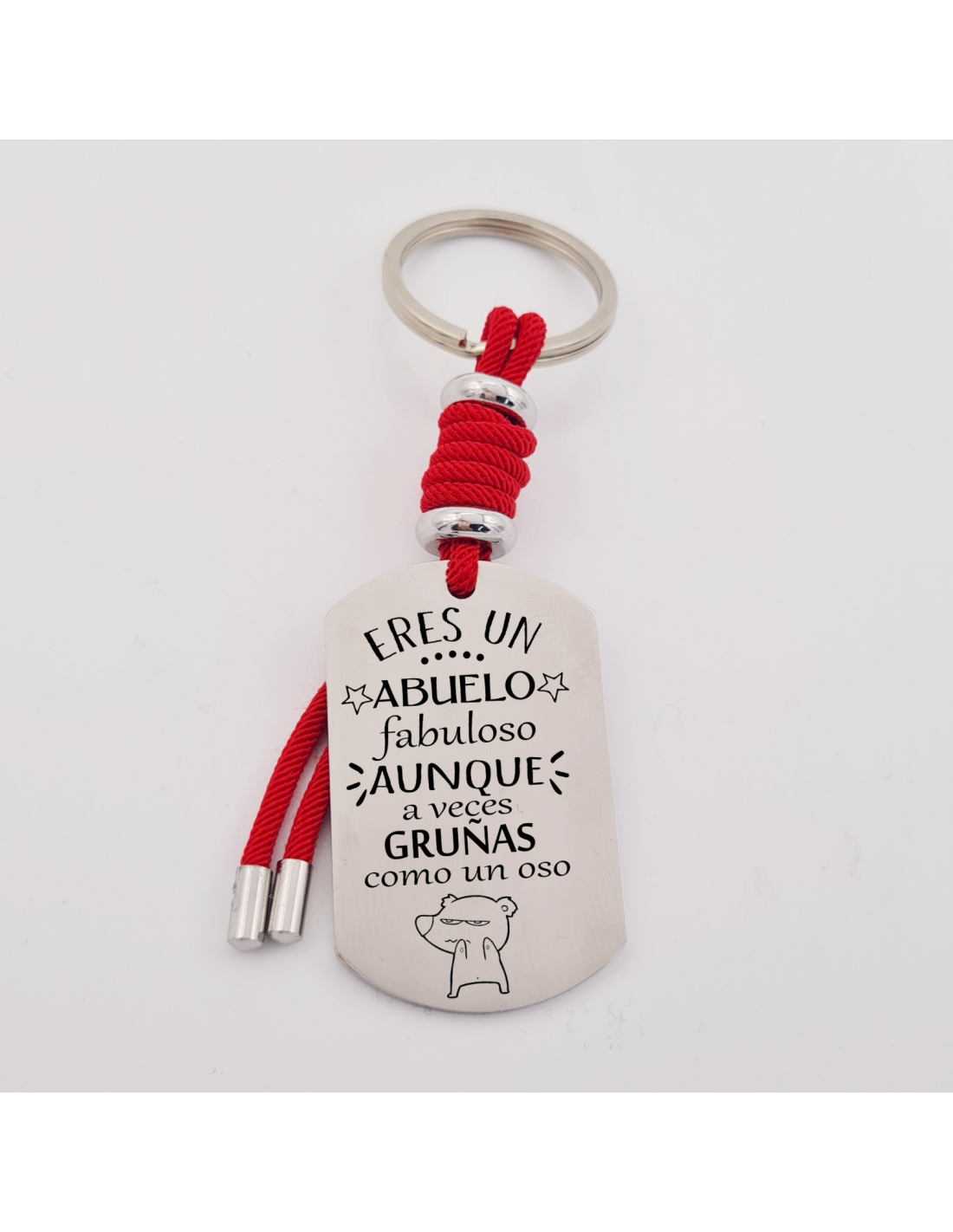 Llavero VENTURA, (Eres un abuelo fabuloso aunque gruñas como un oso), cordón de milano, acero inoxidable.
