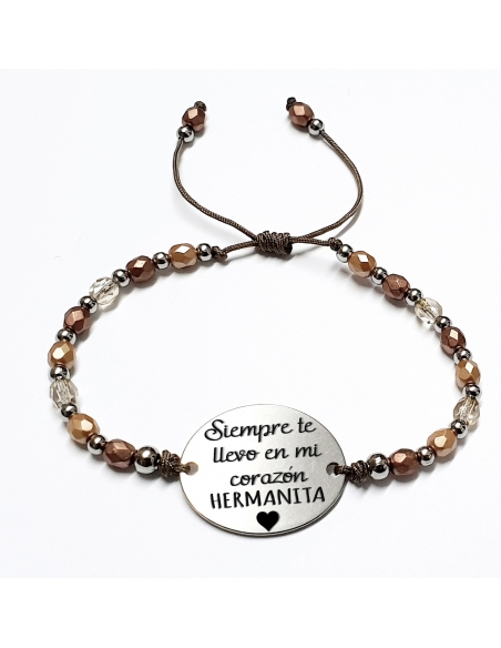 Pulsera AFRODITA, con frase (Siempre te llevo en mi corazón hermanita) ajustable.