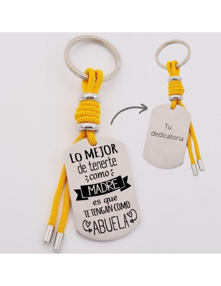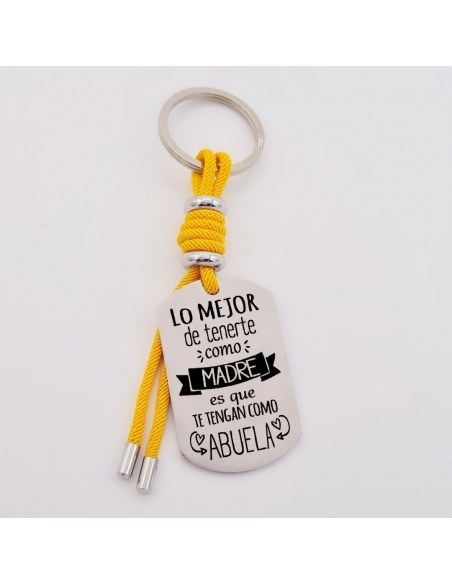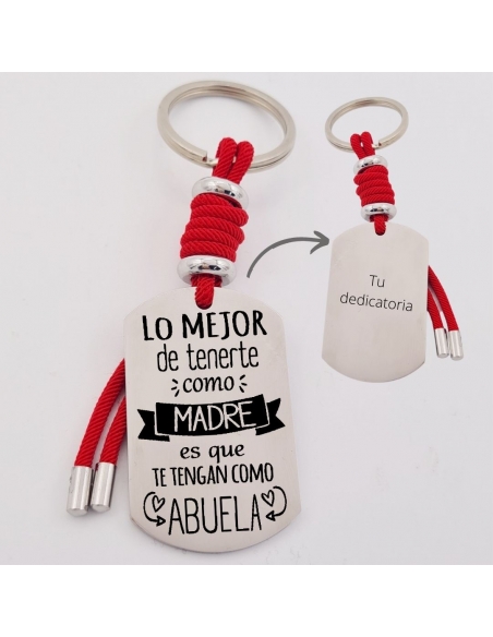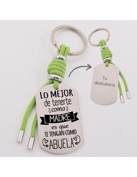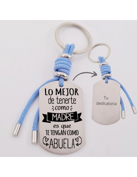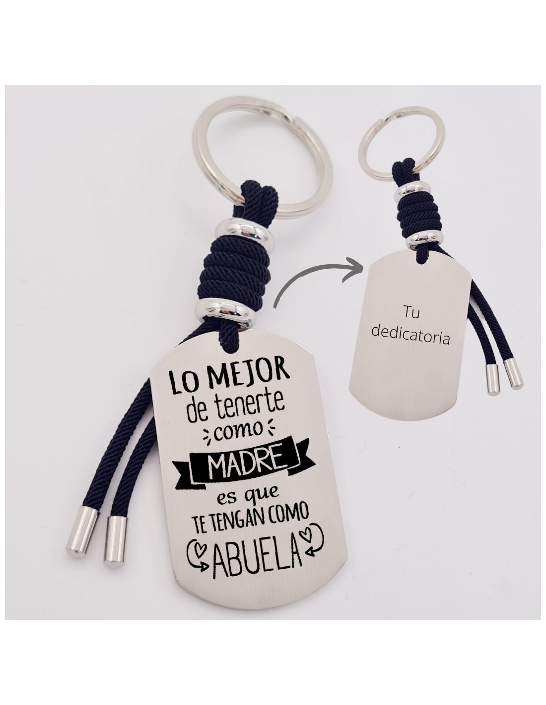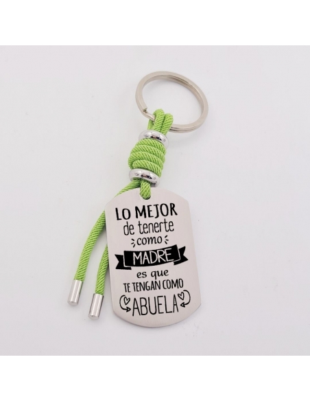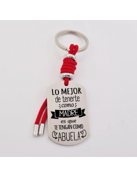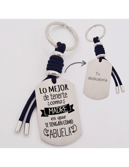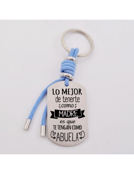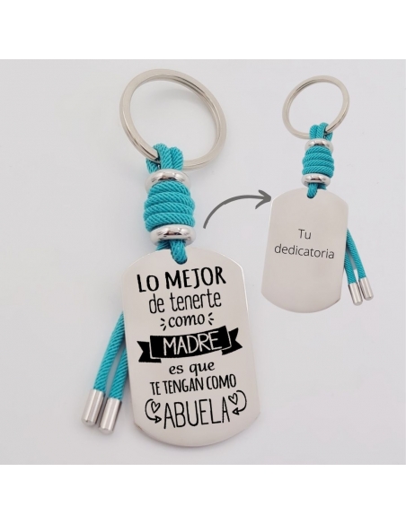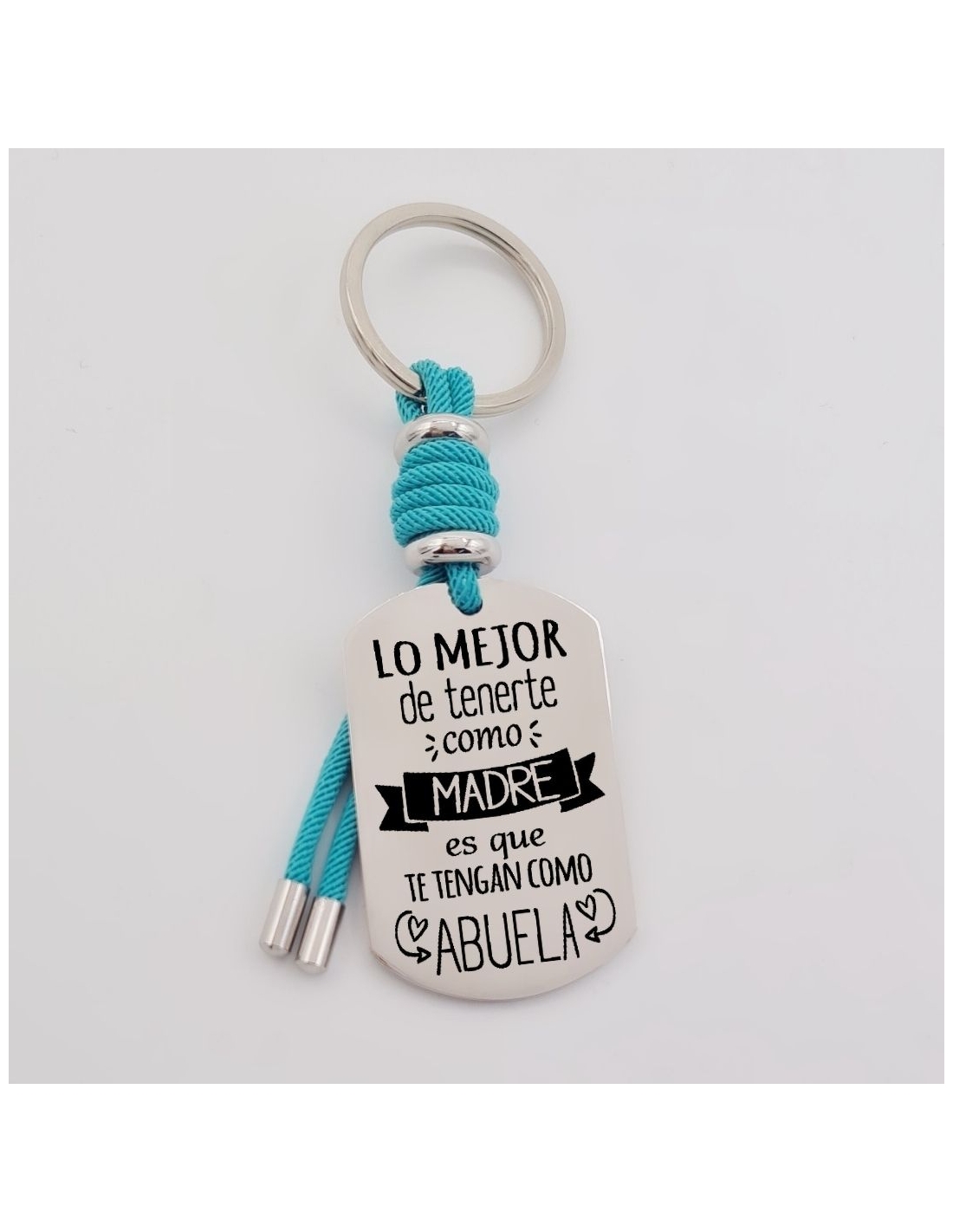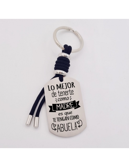 Llavero VENTURA, (lo mejor de tenerte como madre, es que seas su abuela), cordón de milano, acero inoxidable.