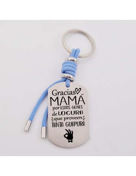 Llavero VENTURA, (Gracias Papá, por estos genes de locura), cordón de milano, acero...