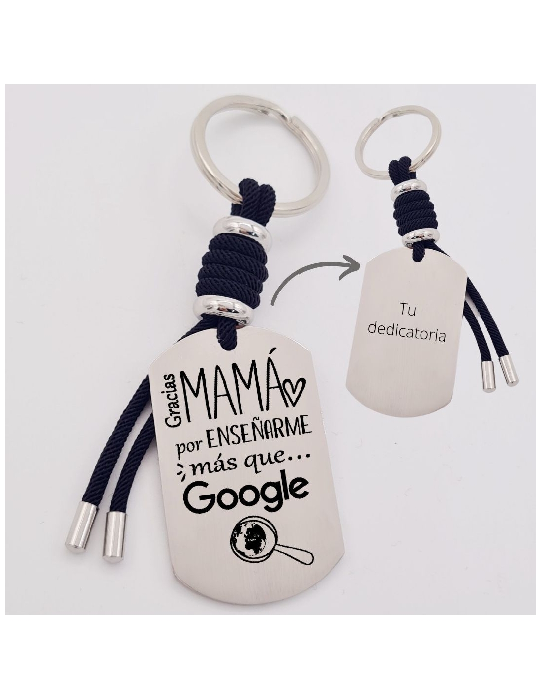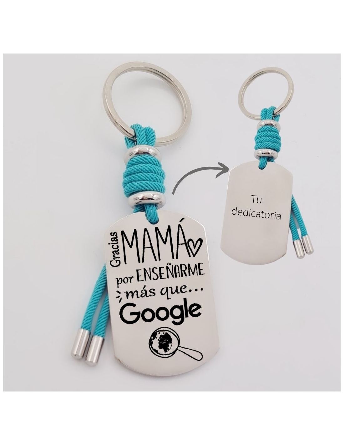 Llavero VENTURA, (gracias mama, por enseñarme más que google), cordón de milano, acero inoxidable.