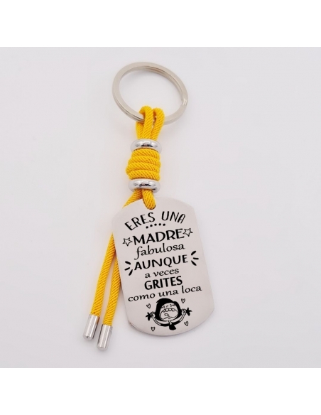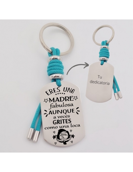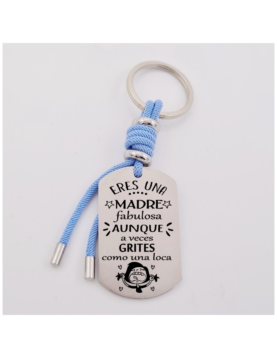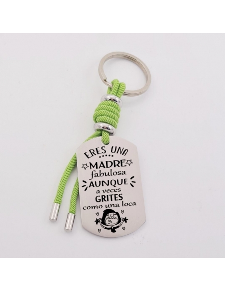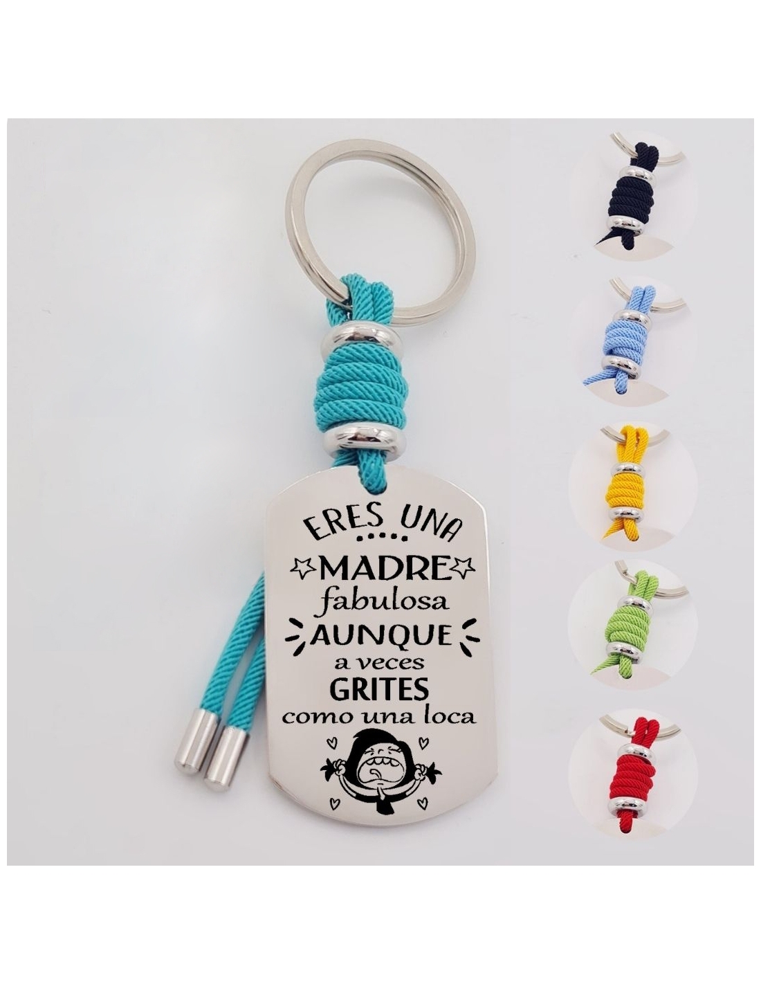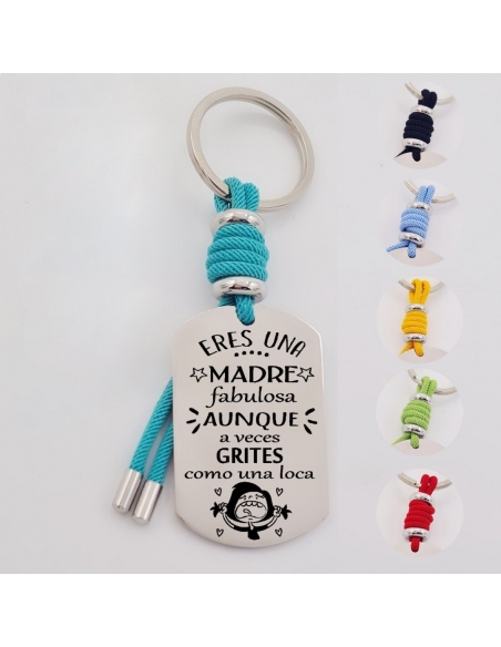 Llavero VENTURA, (eres una madre fabulosa), cordón de milano, acero inoxidable.