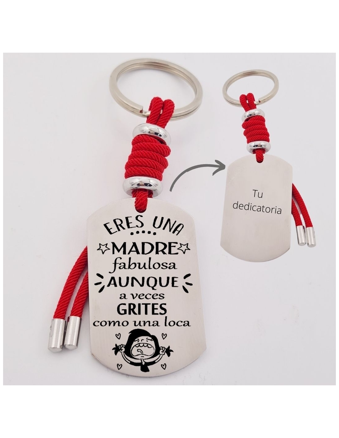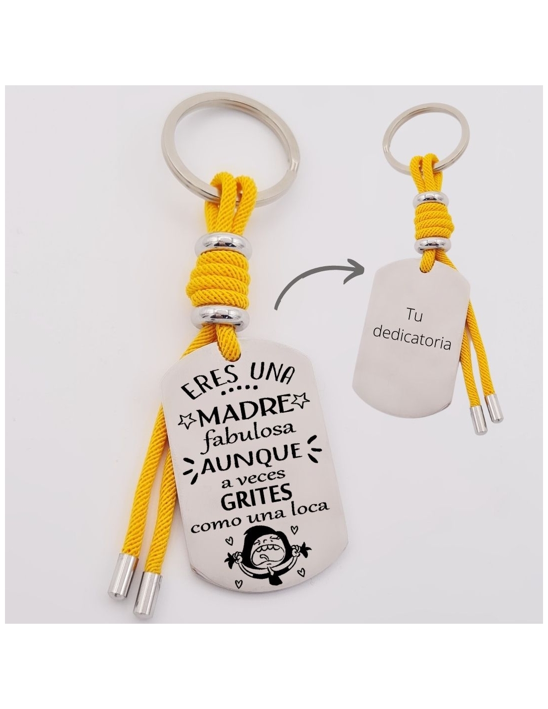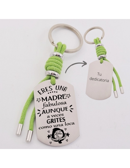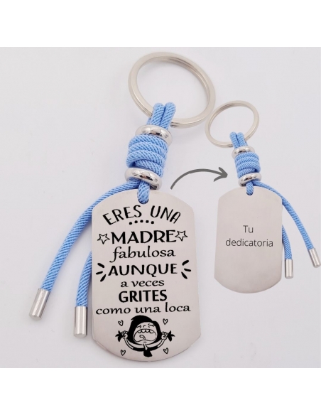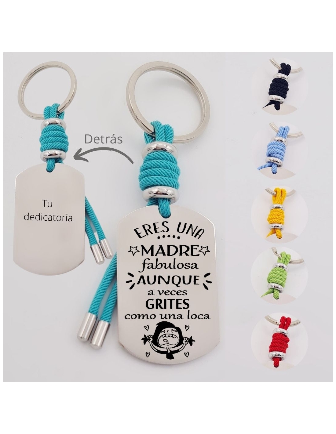 Llavero VENTURA, (eres una madre fabulosa), cordón de milano, acero inoxidable.
