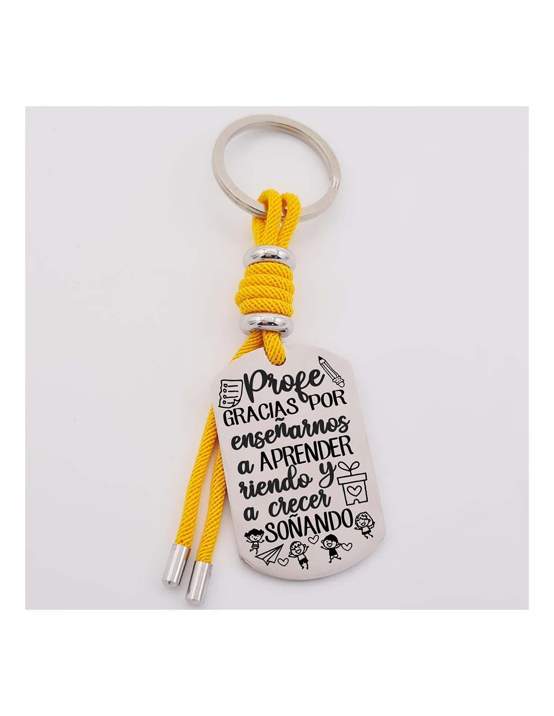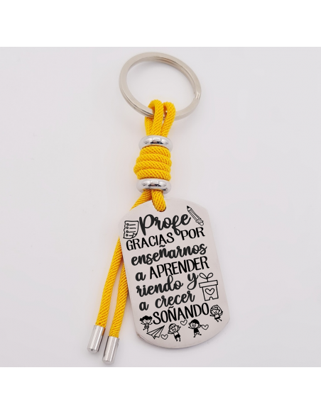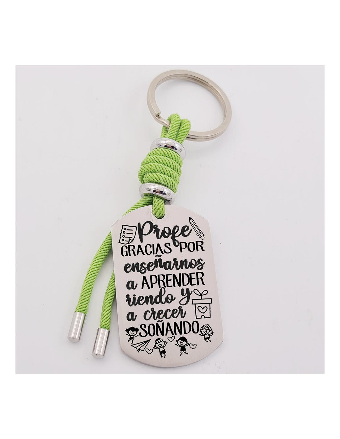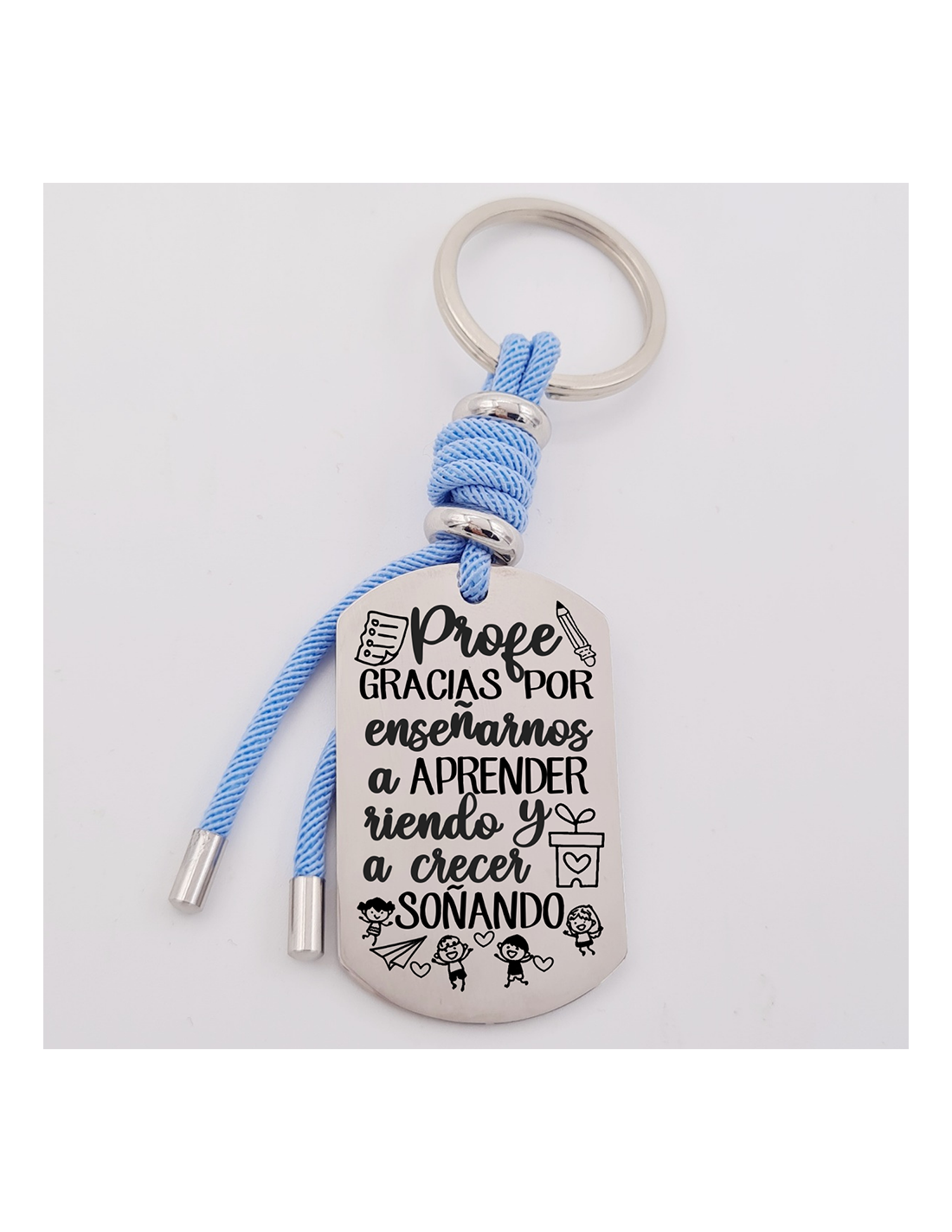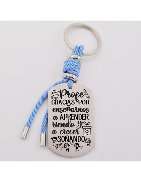 Llavero VENTURA, (Gracias profe, por enseñarme a volar alto), cordón de milano, acero...
