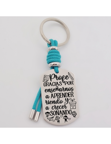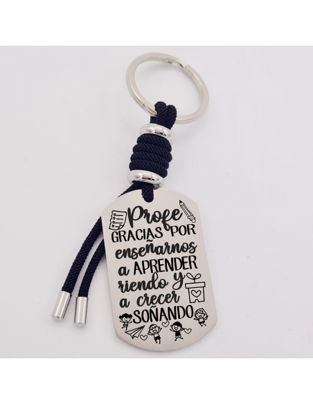 Llavero VENTURA, (gracias profe has dejado huella), cordón de milano, acero inoxidable.