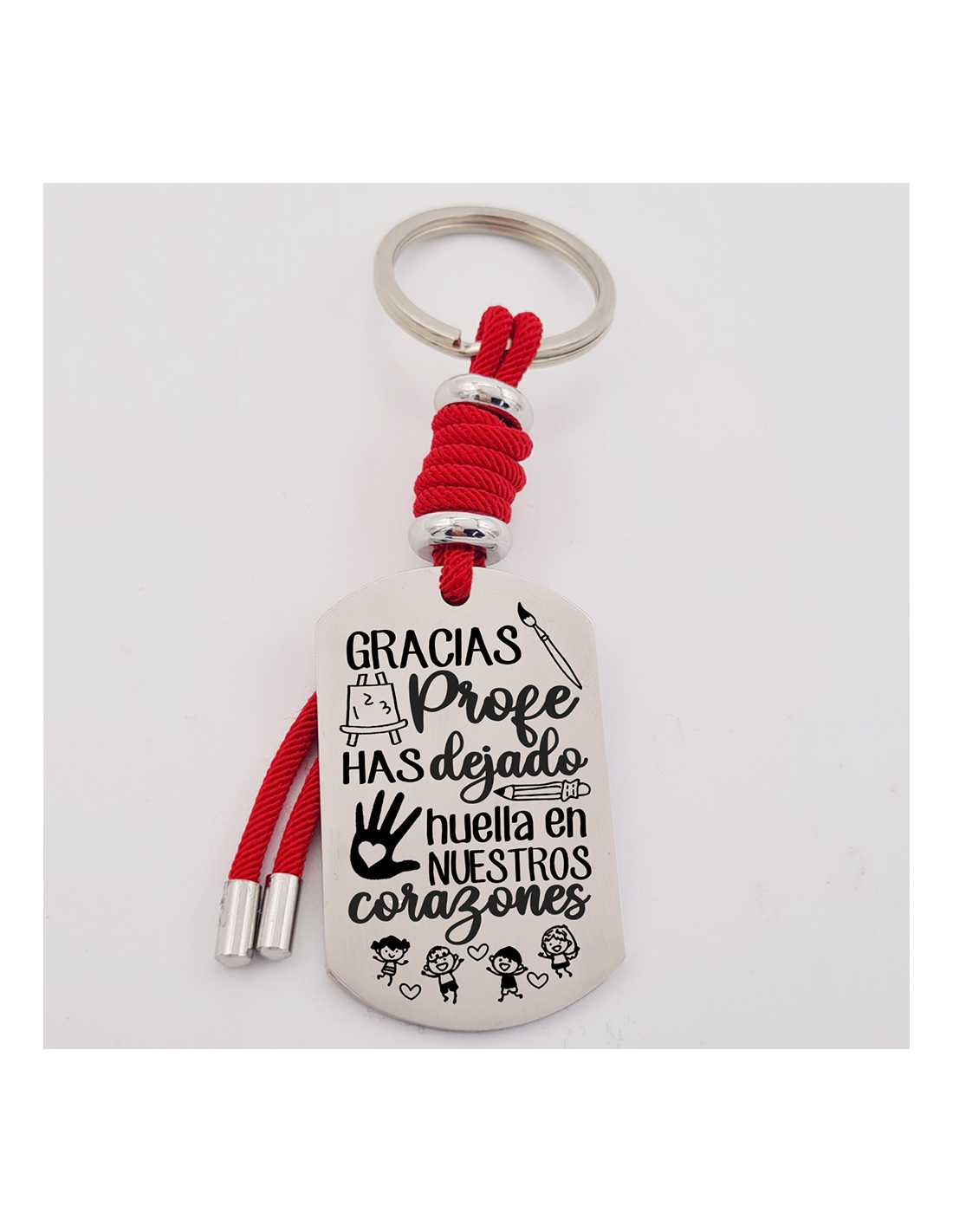 La placa del llavero mide 48x28mm, la anilla del llavero mide 30mm, la correa 32mm aproximadamente.