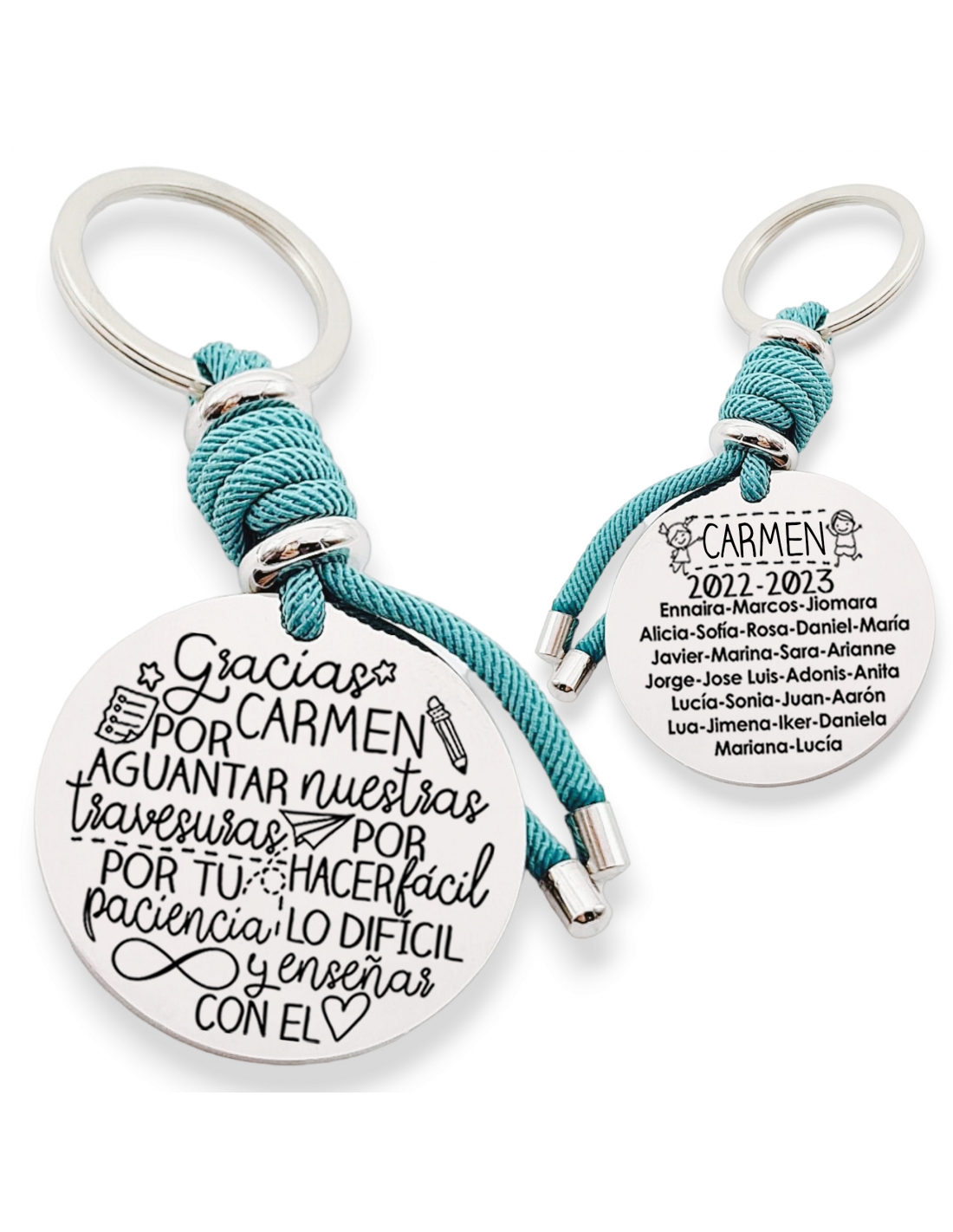 Puedes personalizar el llavero con el nombre del profesor, curso y los nombres de los niños.