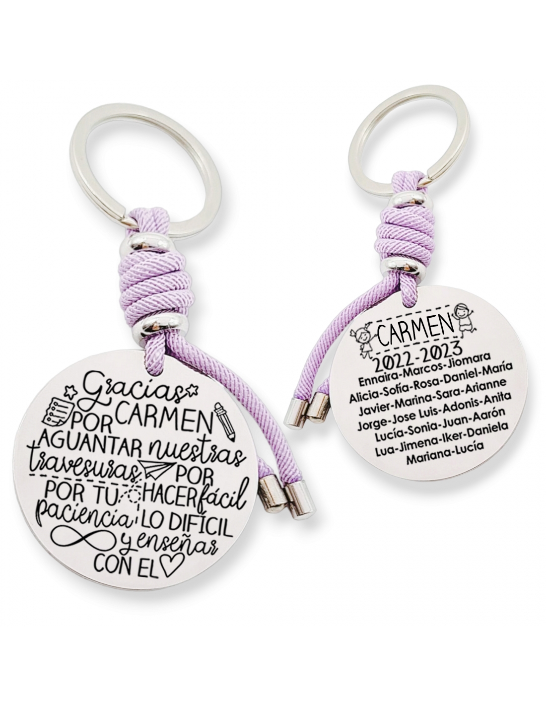 Puedes personalizar el llavero con el nombre del profesor, curso y los nombres de los niños.