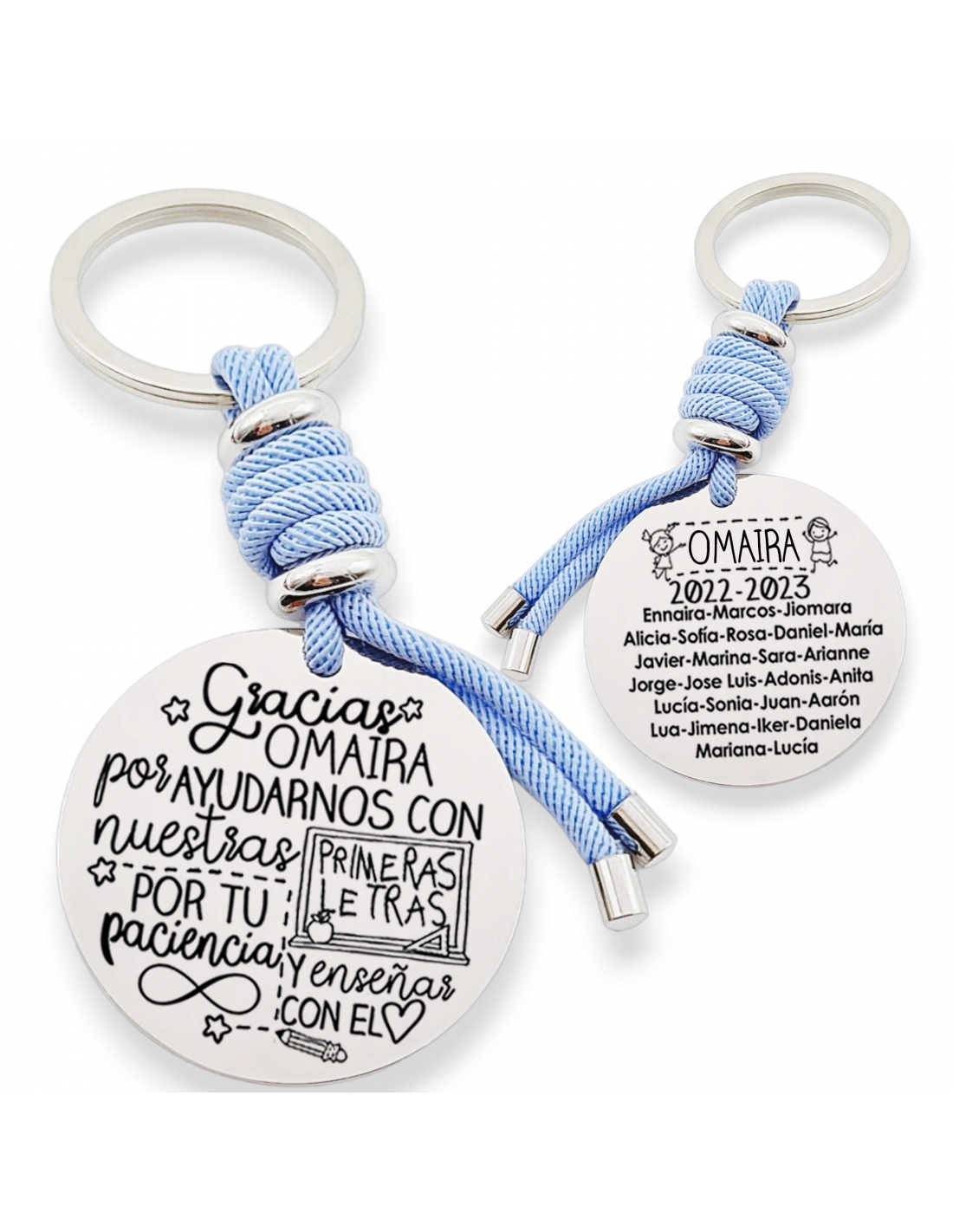 Puedes personalizar el llavero con el nombre del profesor, curso y los nombres de los niños.