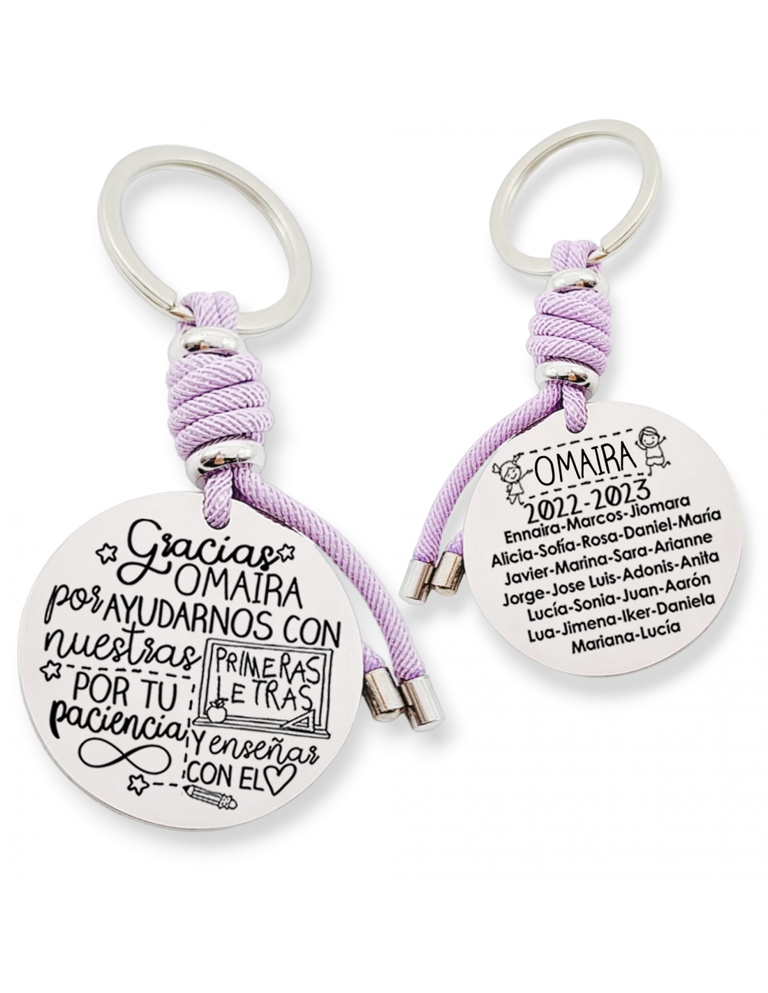 Puedes personalizar el llavero con el nombre del profesor, curso y los nombres de los niños.