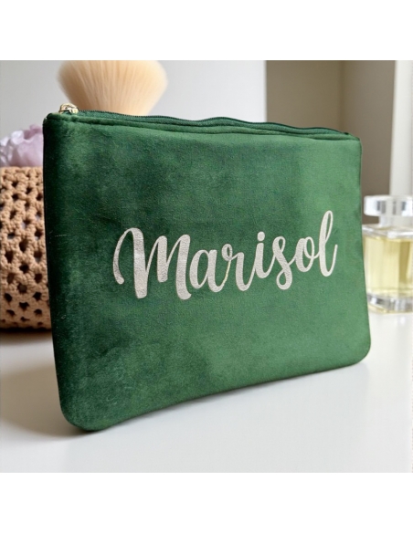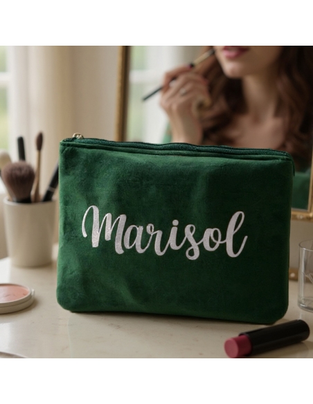 Precioso neceser de terciopelo de agradable tacto y forrado con raso en el interior (efecto acolchado voluminoso).