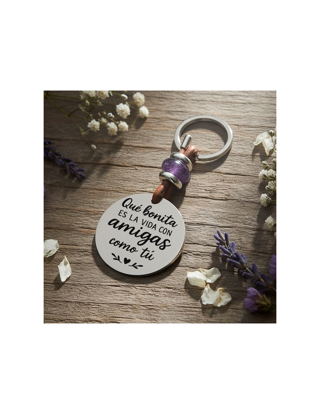 Llavero “Que bonita es la vida con amigas como tú” con piedra mineral natural