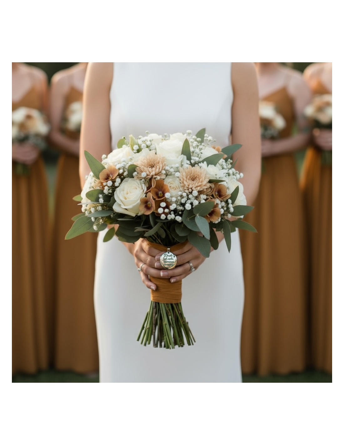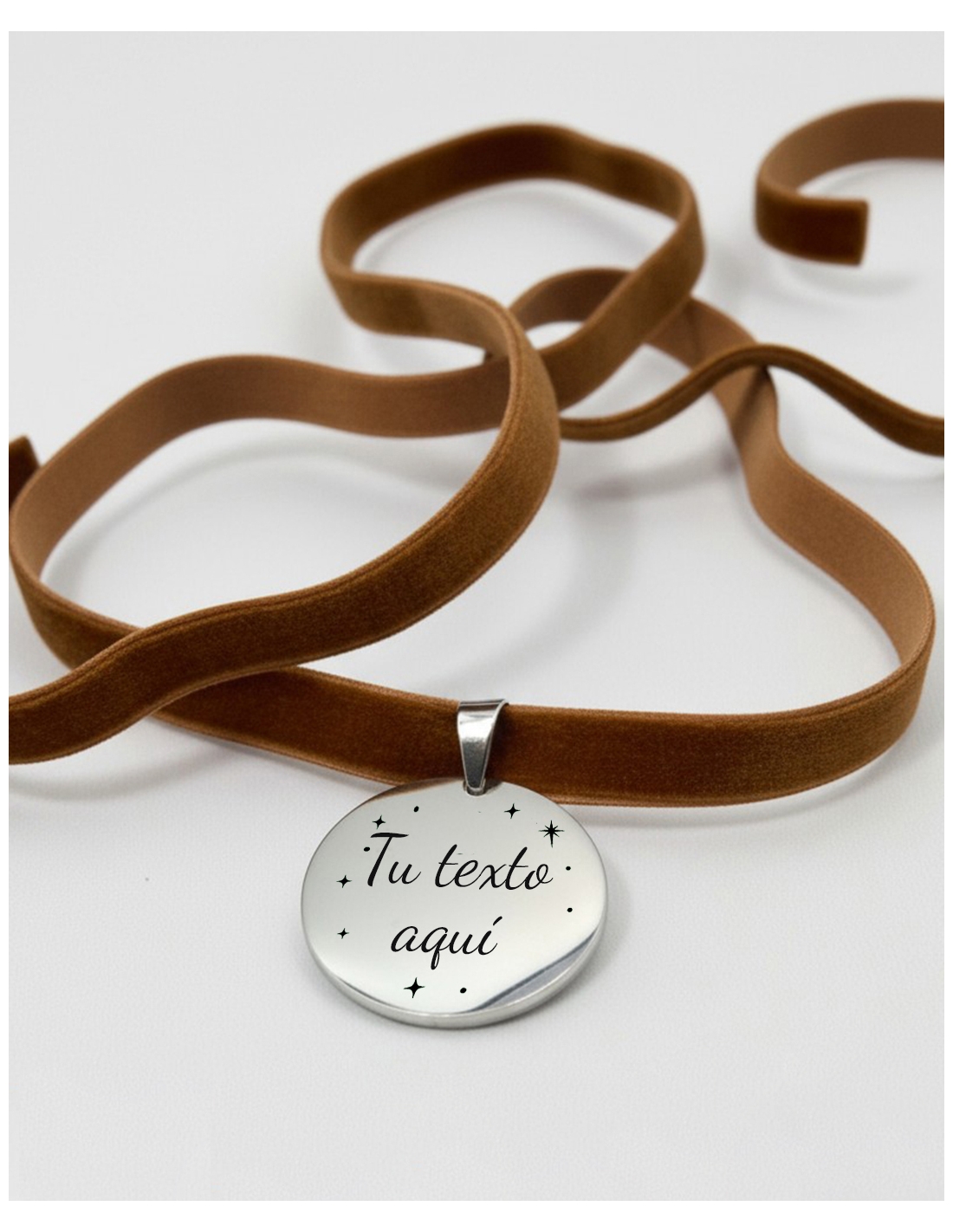 Medalla (Tu texto aquí) y cinta de terciopelo elástica para ramos y eventos conmemorativos (1pc).