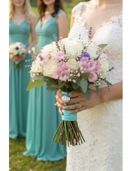 La cinta de terciopelo es elástica, lo que permite adaptarla con facilidad al ramo de novia, muñeca, cuello o cualquier lugar que desees, convirtiéndose en un símbolo discreto y elegante de unión y recuerdo.