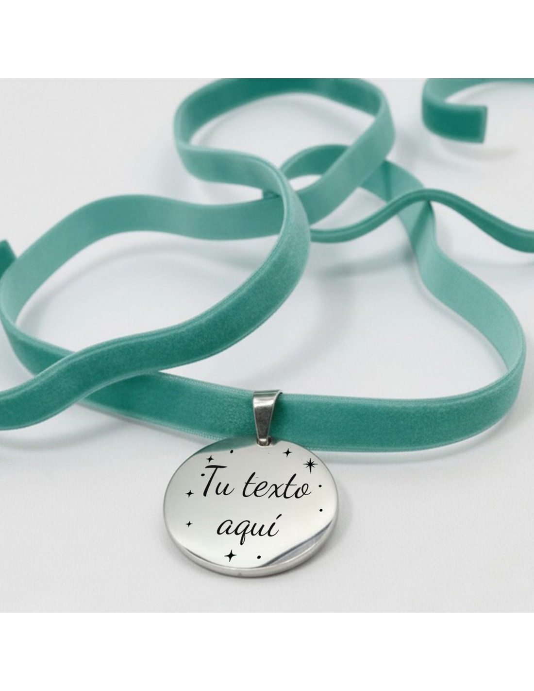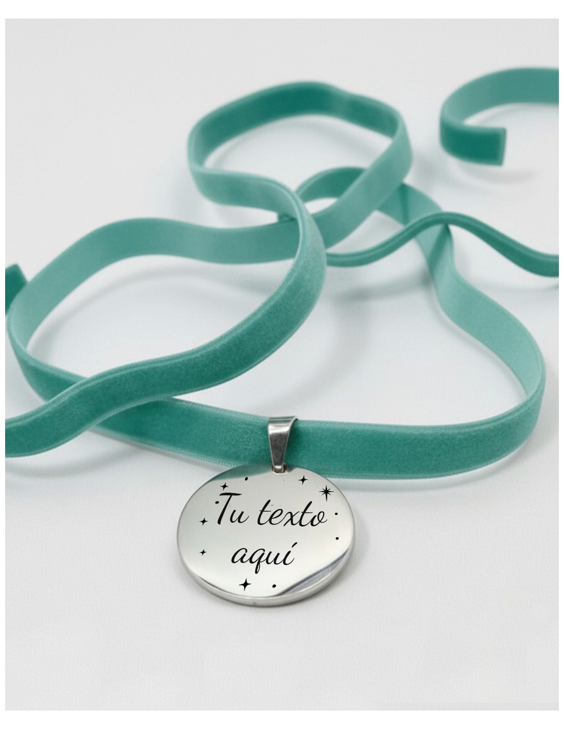 Medalla (Tu texto aquí) y cinta de terciopelo elástica para ramos y eventos conmemorativos (1pc).