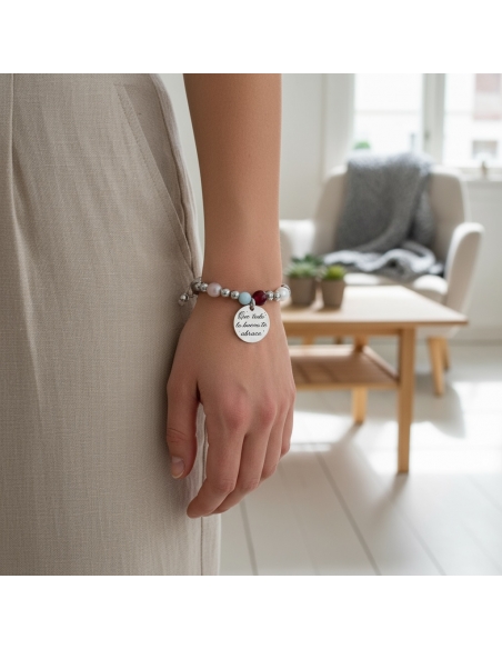 Pulsera de minerales con mensajes bonitos grabados, ideal para sorprender a quien más quieres (1pc).