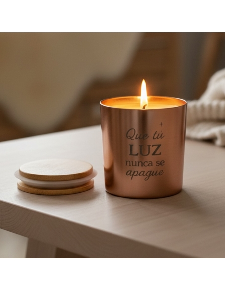 Ilumina los momentos importantes con nuestras velas metálicas grabadas, un detalle lleno de significado para regalar o decorar tu hogar.
