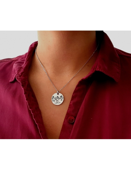 El collar de la modelo mide 45cm. La medalla mide 20mm.
