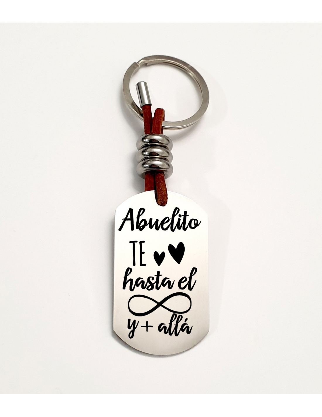 Llavero ADVENTURE, con frase (Abuelito te quiero hasta el infinito) acero inoxidable.