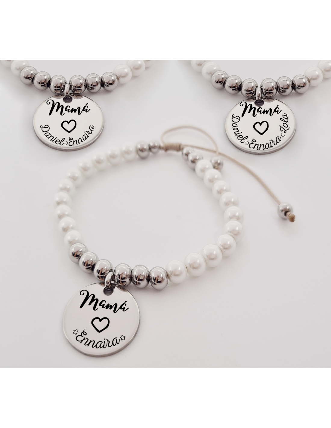 Pulsera modelo NACALA, con frase mamá de ... y el nombre de los que más amas.