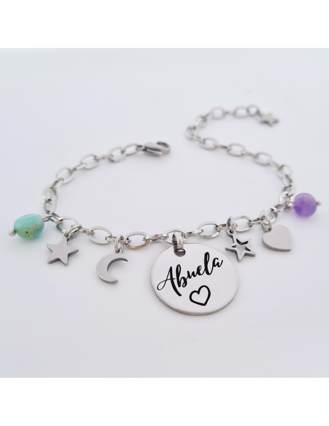 Pulsera para abuela, modelo ASTRID, montada con piedras naturales y acero.