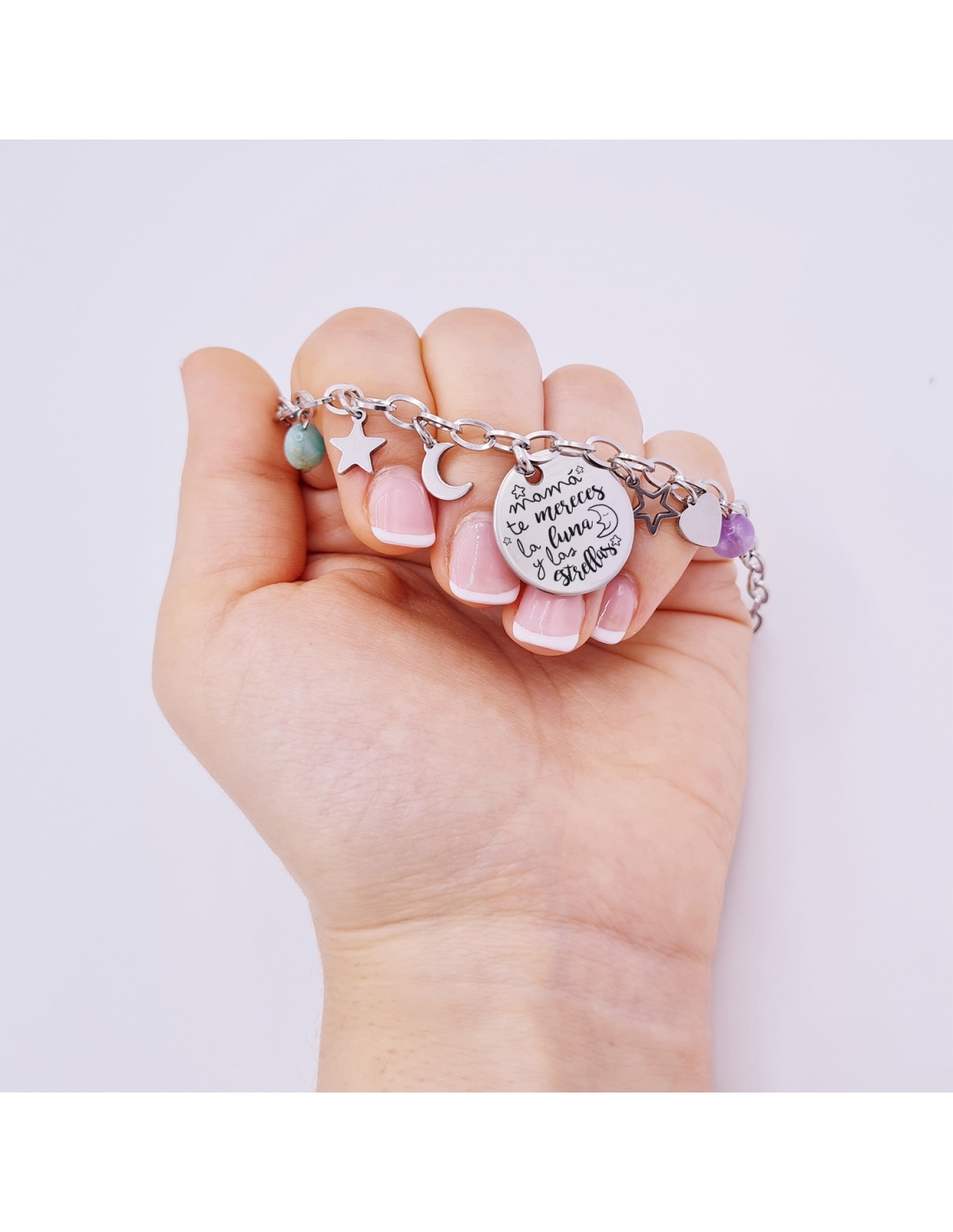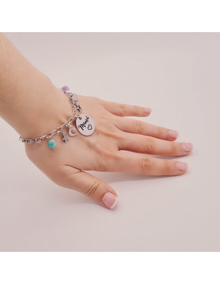 Pulsera para mamá, modelo ASTRID, montada con piedras naturales y acero.