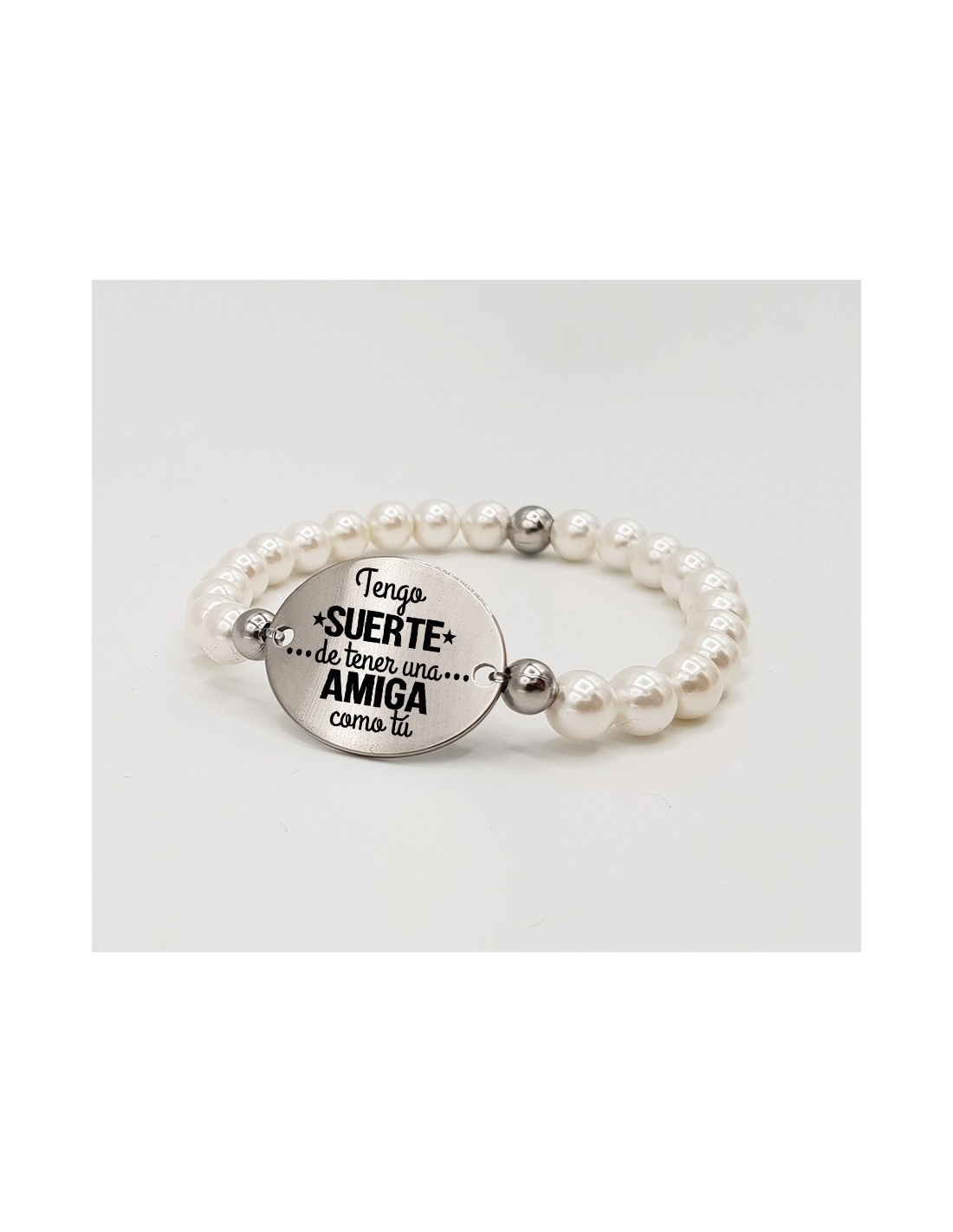 Pulsera ORIGEN, con frase (Tengo suerte de tener una amiga como tú) elástica.