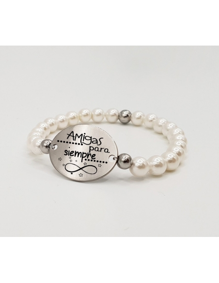 Pulsera ORIGEN, con frase (Amigas para siempre) elástica.