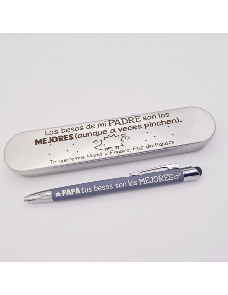 Bolígrafo MODELO CLASICO. Los besos de mi padre, son los mejores, aunque a veces pinchen, caja incluida (1pc).