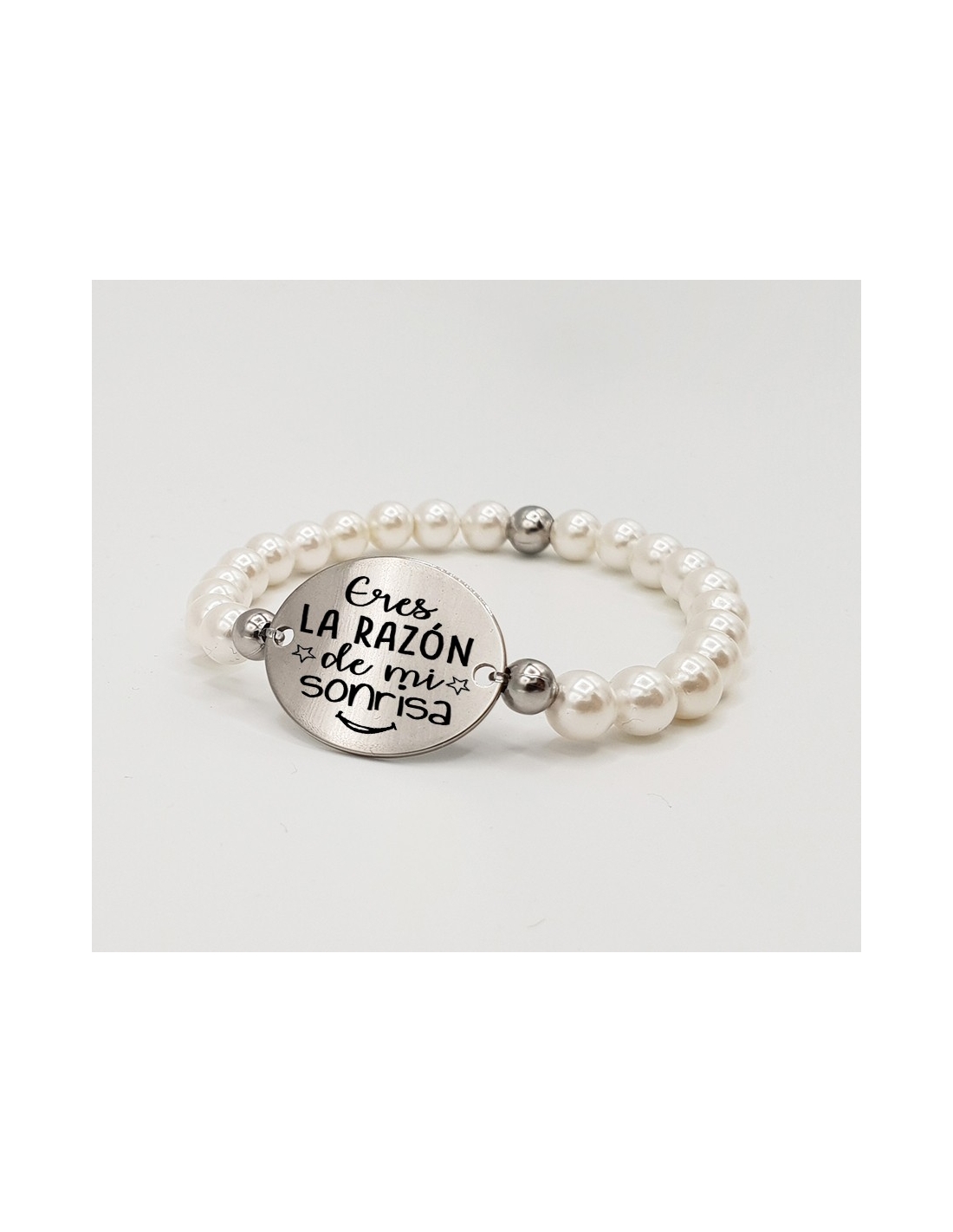 Pulsera ORIGEN, con frase (Eres la razón de mi sonrisa) elástica.
