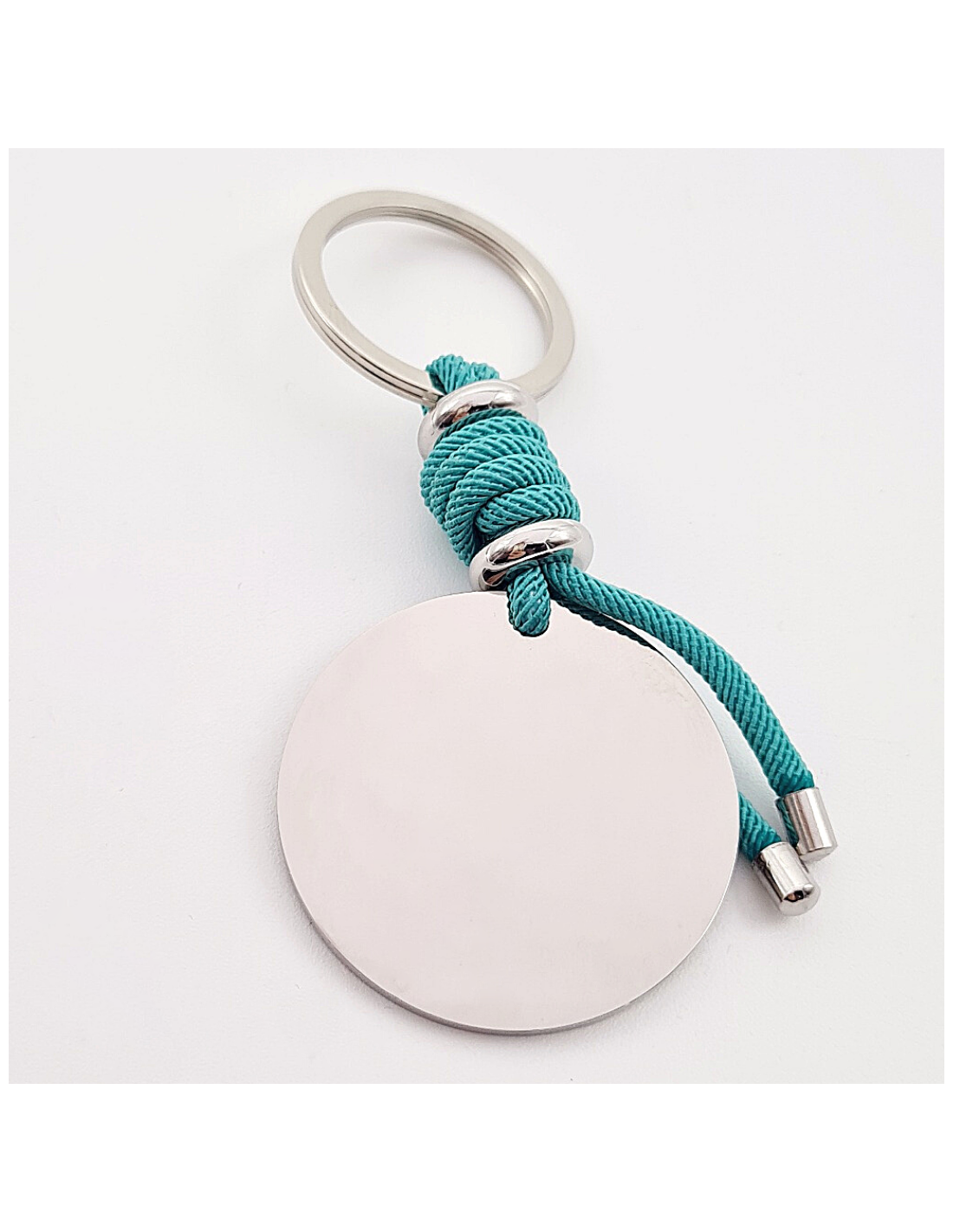 Llavero VENTURA, con toque de color y cordón de milano, acero inoxidable.