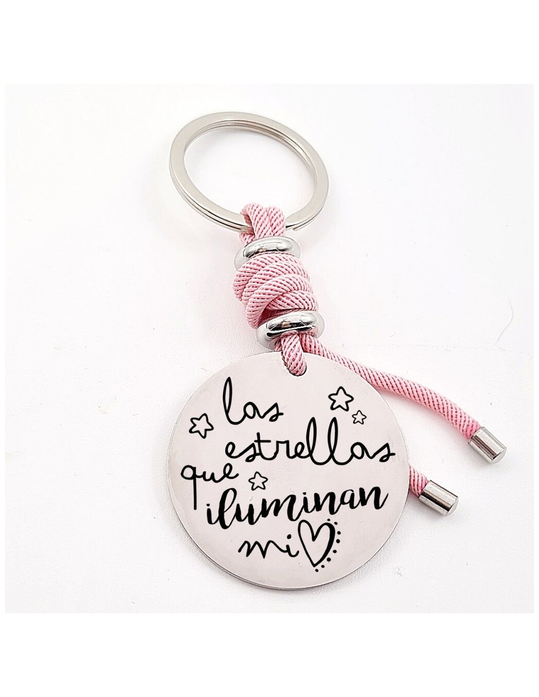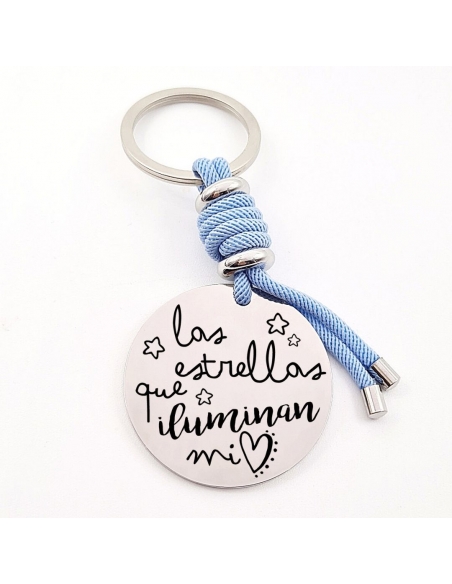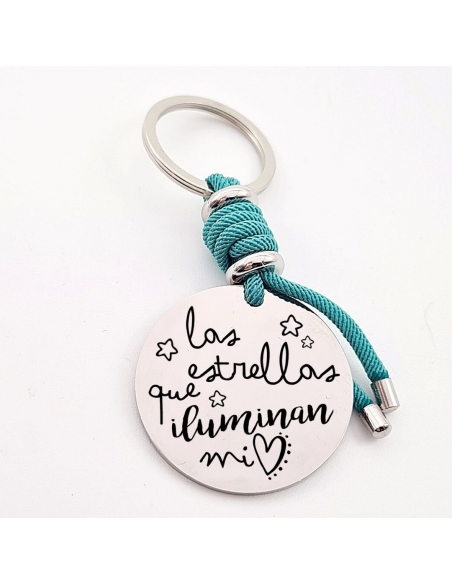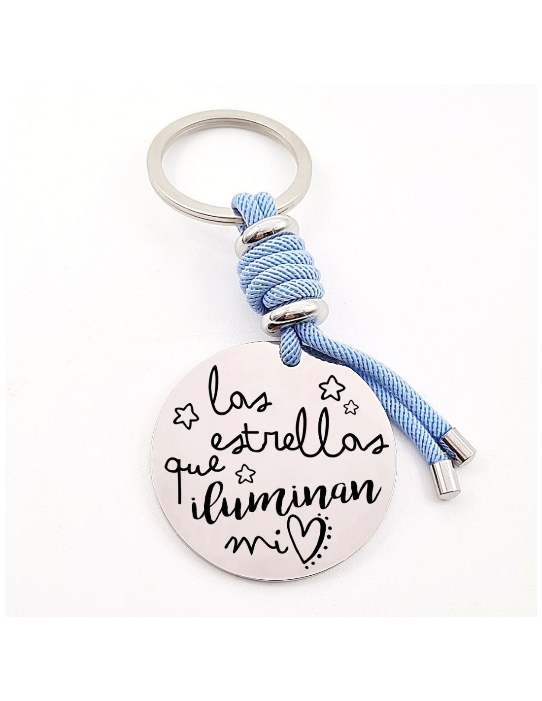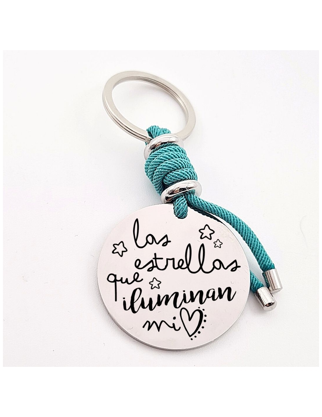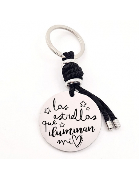 Llavero con frase (Las estrellas que iluminan mi), personaliza con una dedicatoria, modelo VENTURA-2 de acero inoxidable.