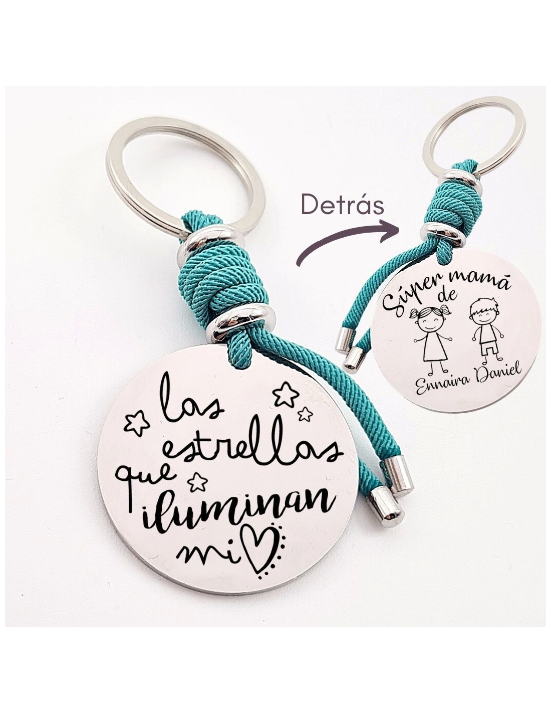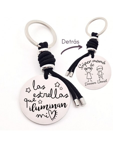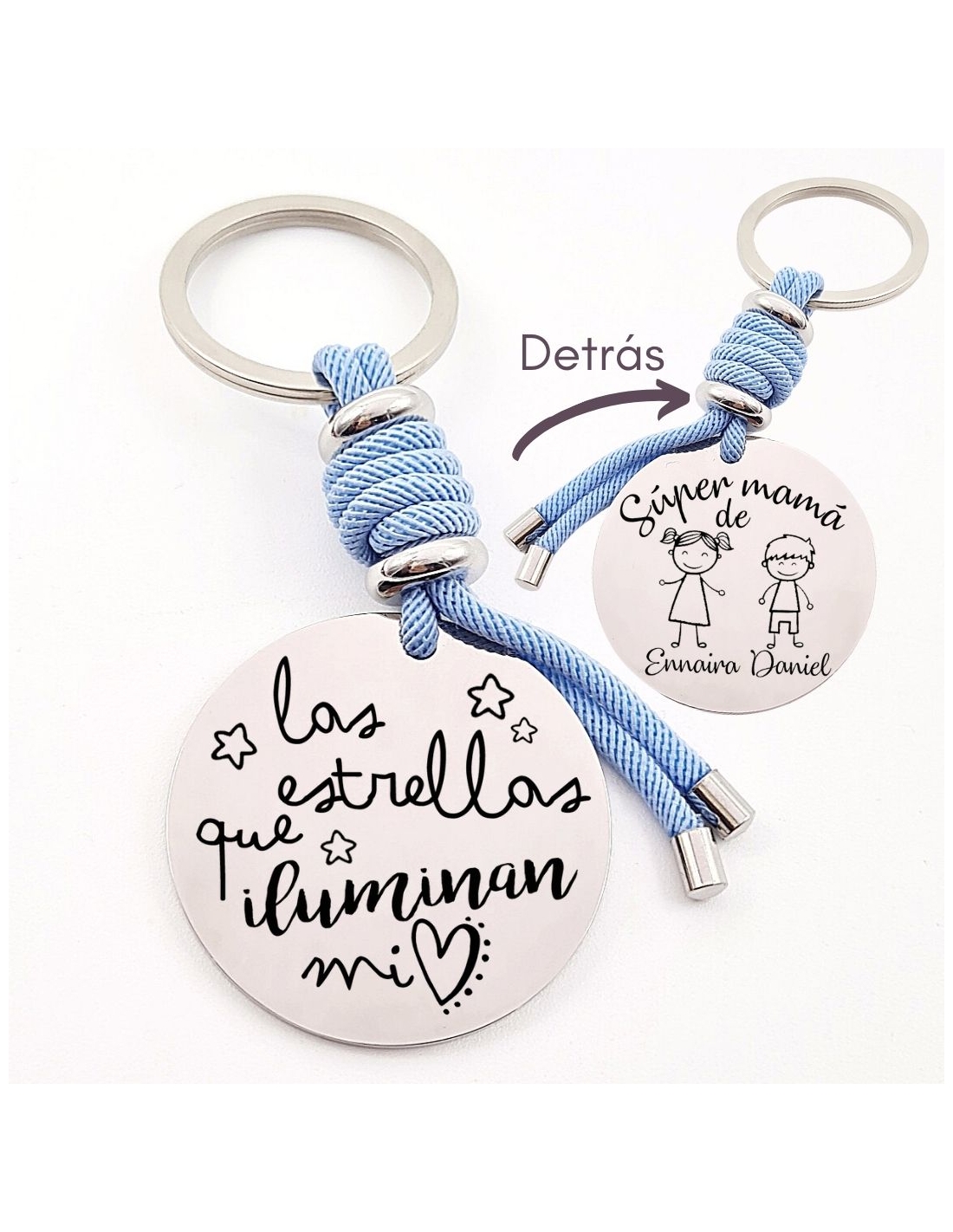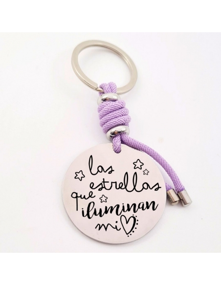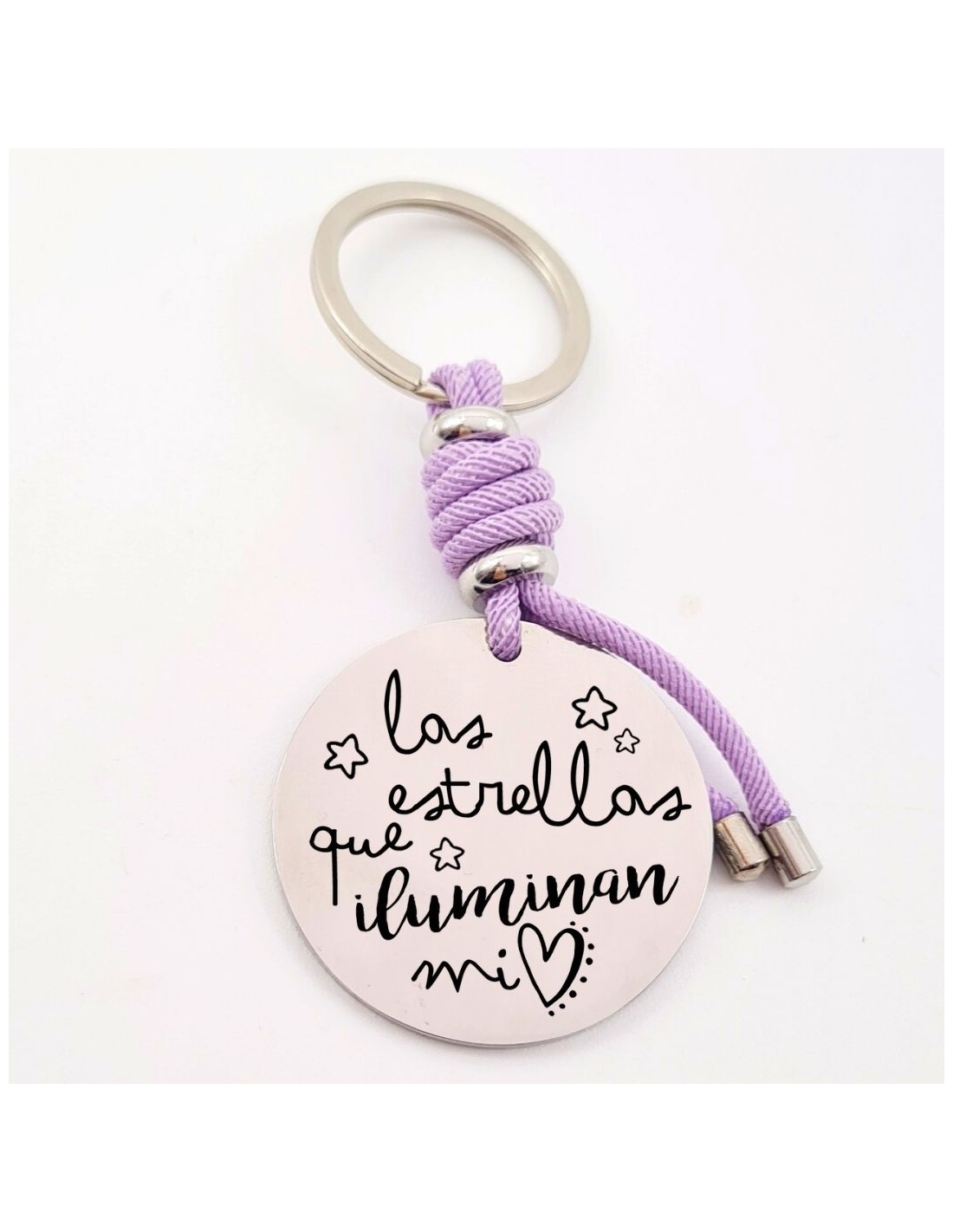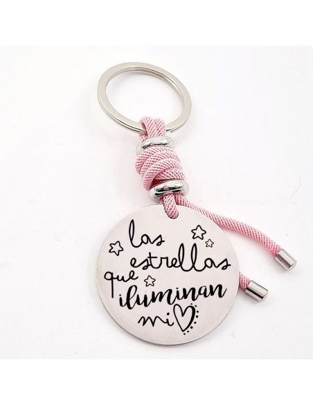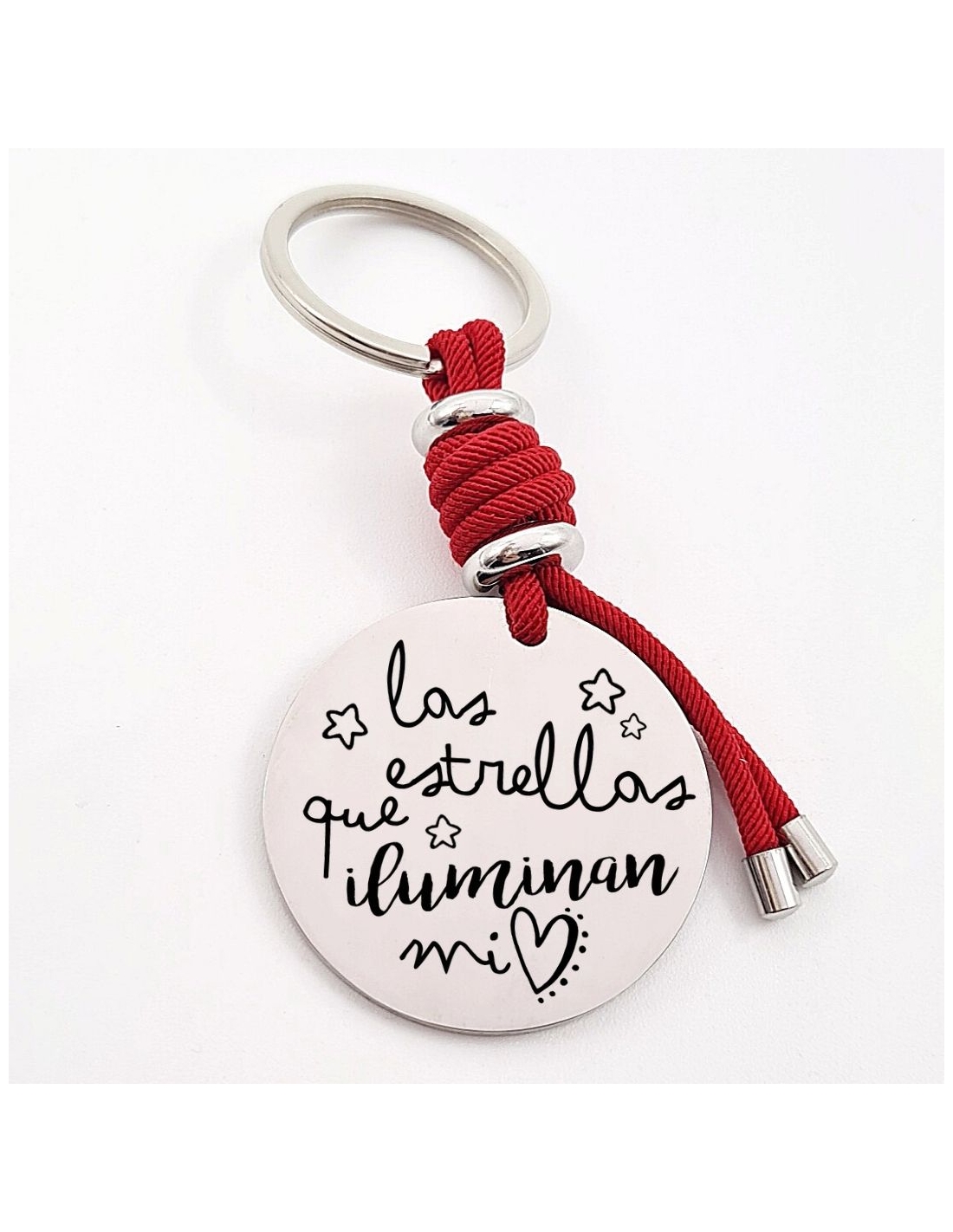 Llavero con frase (Las estrellas que iluminan mi), personaliza con una dedicatoria, modelo VENTURA-2 de acero inoxidable.