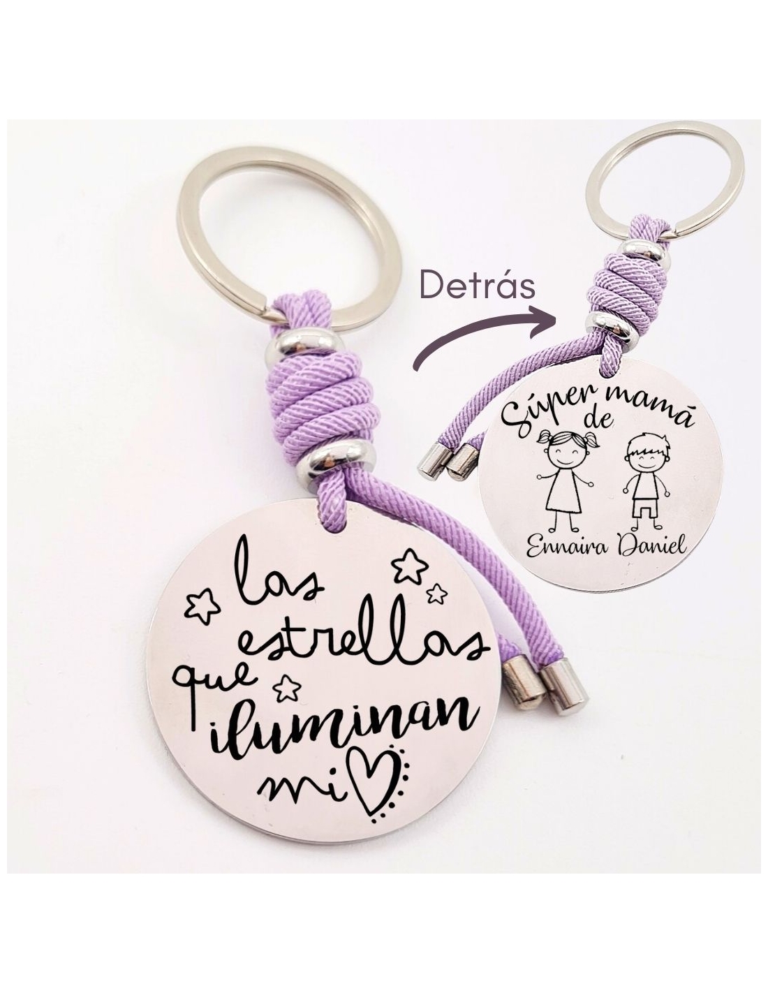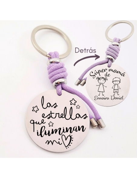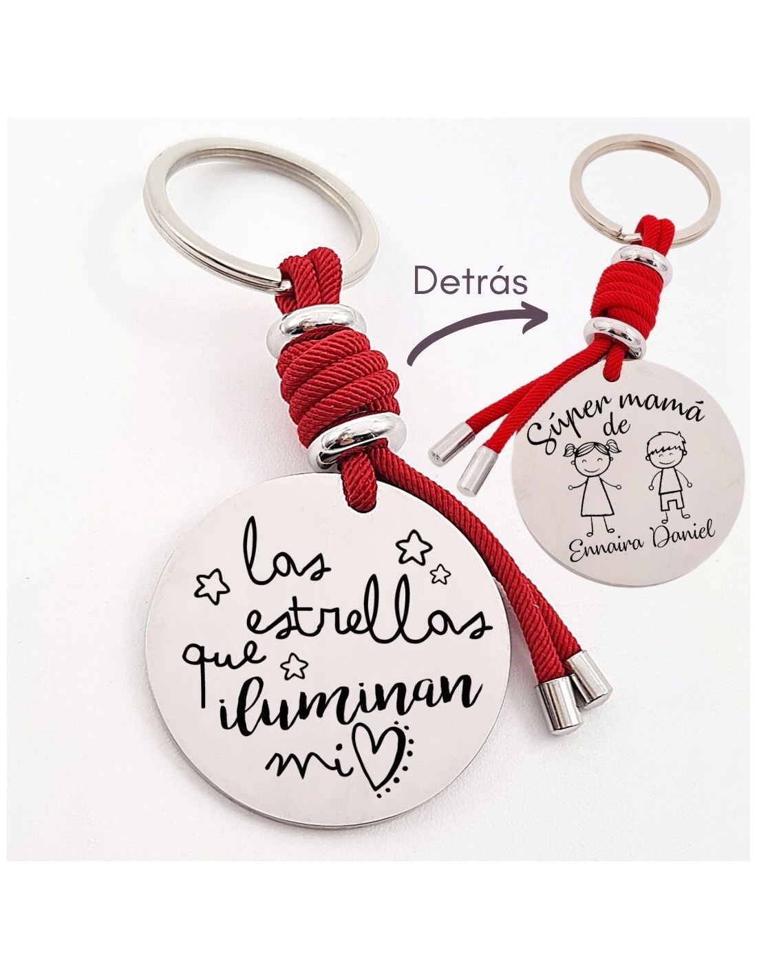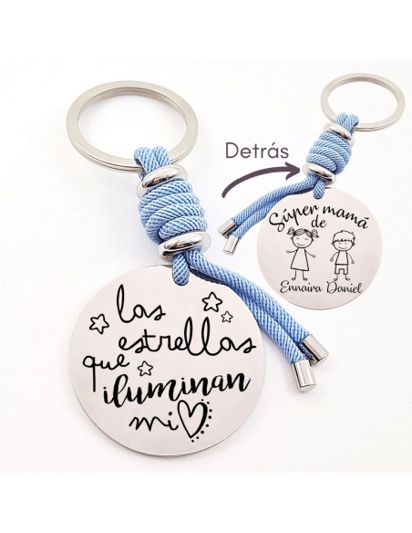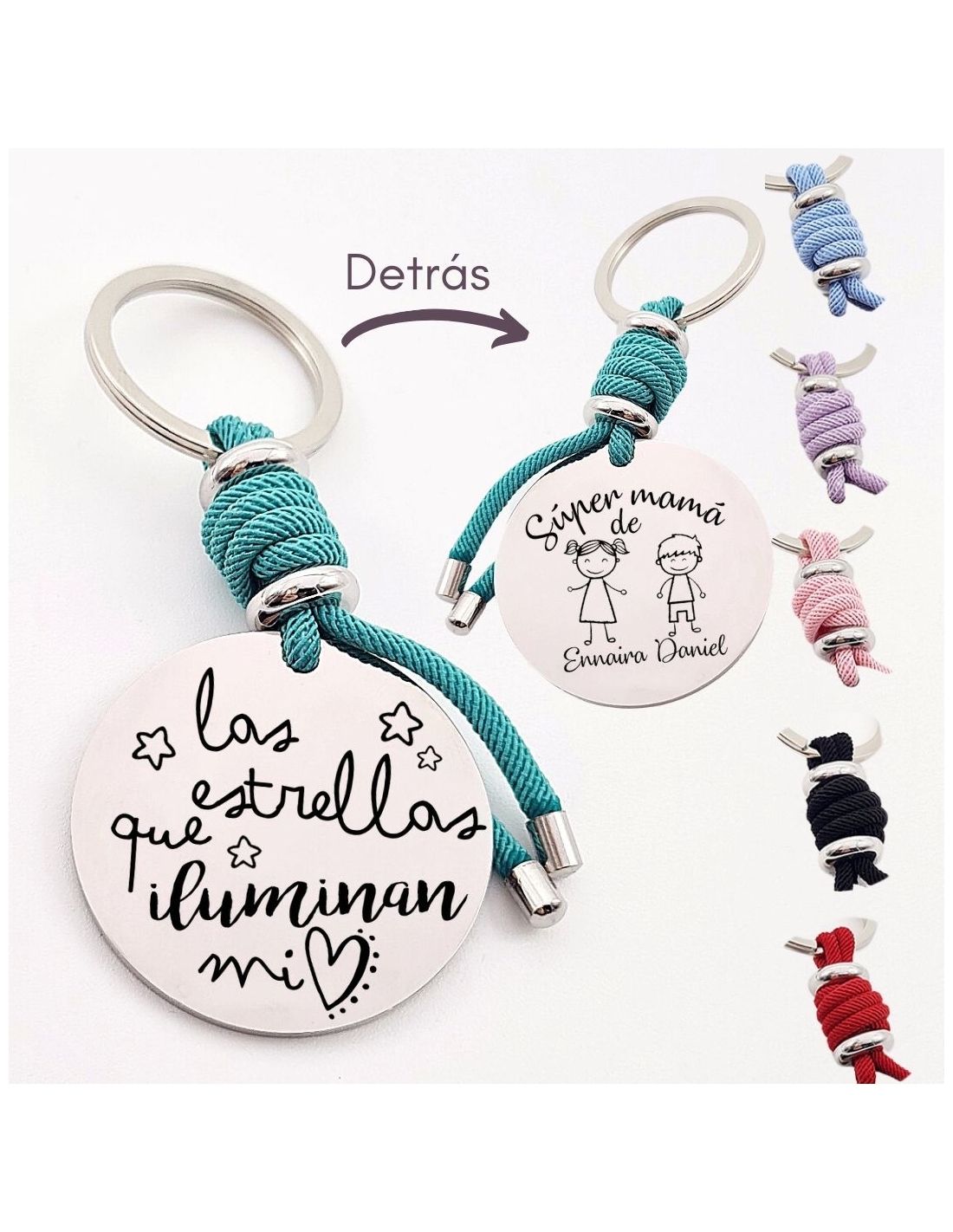 Llavero con frase (Las estrellas que iluminan mi), personaliza con una dedicatoria, modelo VENTURA-2 de acero inoxidable.